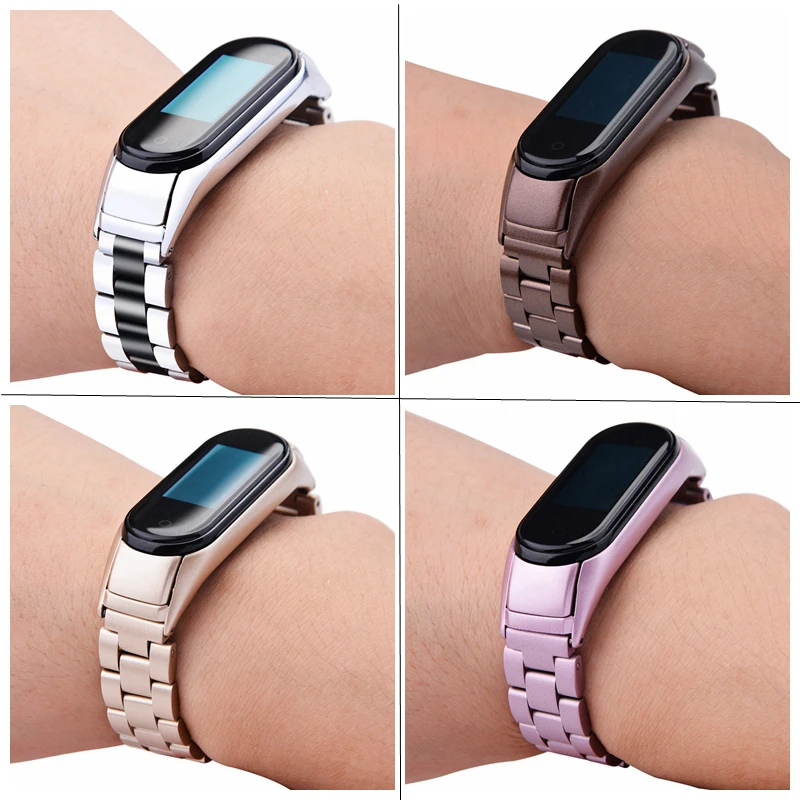 Металлический ремешок из нержавеющей стали для Xiaomi Mi Band 5, ремешки для браслета Mi Band 5, защита из кожи и металлов, ремешок для Miband 5