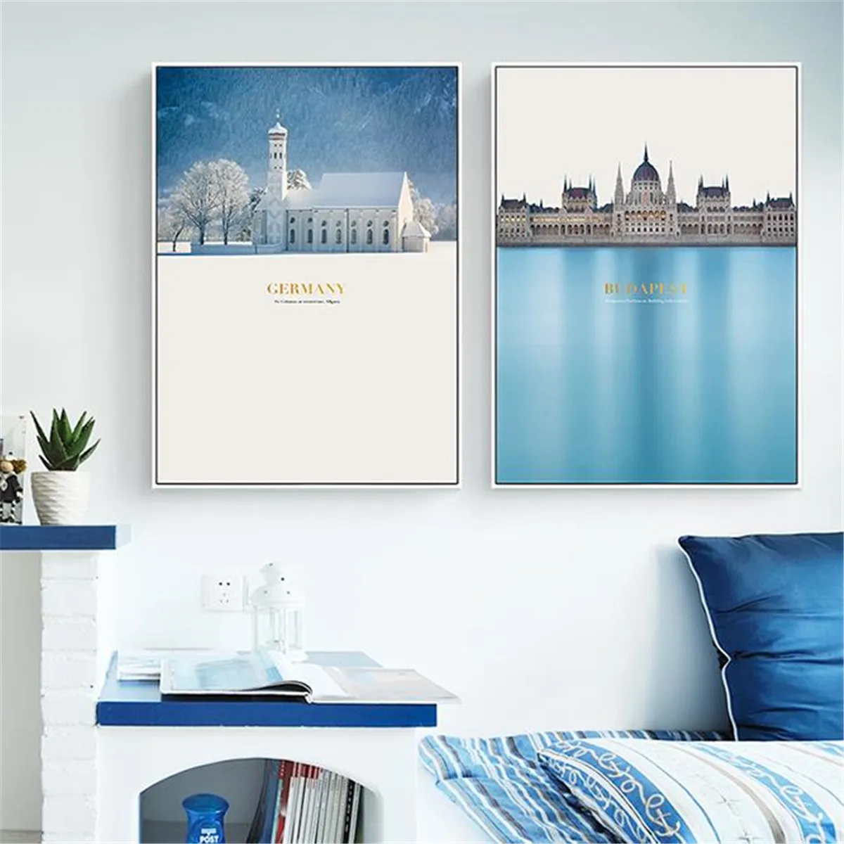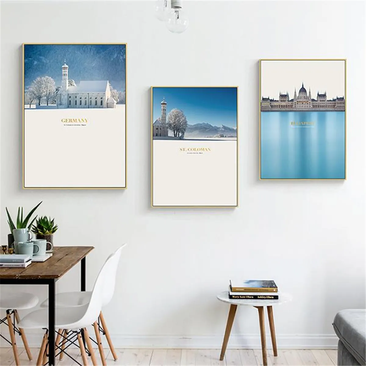 Современный архитектурный постер гор, большое синее озеро, холст, печать, живопись, настенное искусство, гостиная, украшение для дома