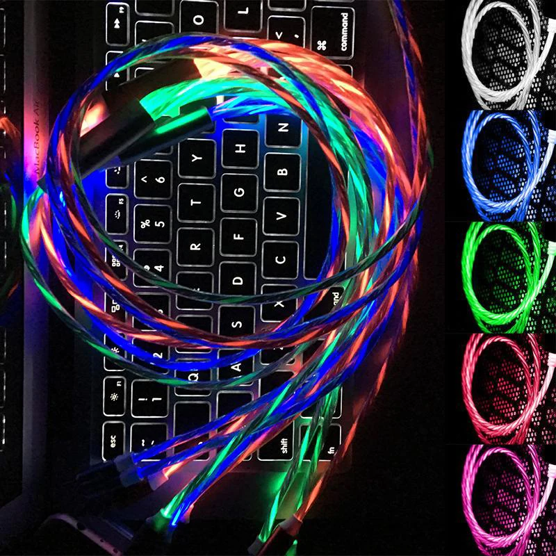 Светодиодный светящийся зарядный кабель Micro USB Тип C для iPhone ...