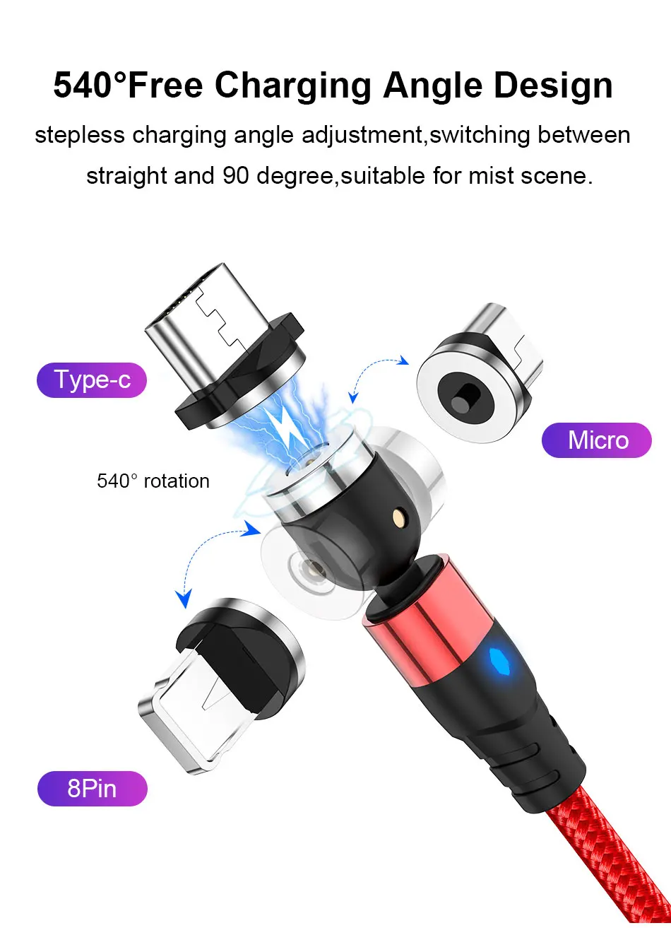 540 Поворот Магнитный кабель быстрой зарядки кабель с разъемом Micr...