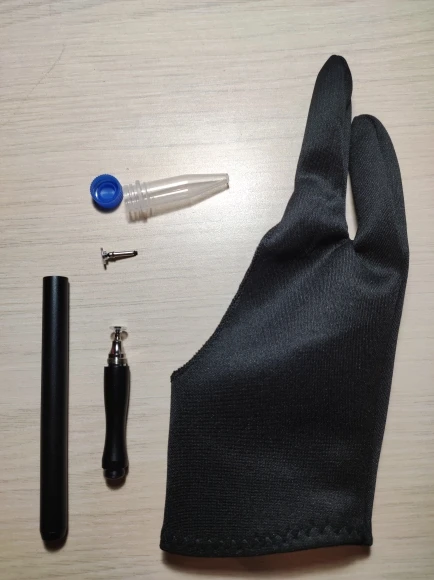 Первые впечатления очень позитивные! Отличная чувствительность. В комплекте запасной наконечник и, что не ожидал - полуперчатка (на мезинец и безымянный палец) для рисования в планшете. Пока только не понял зачем он откручивания с обратной стороны.