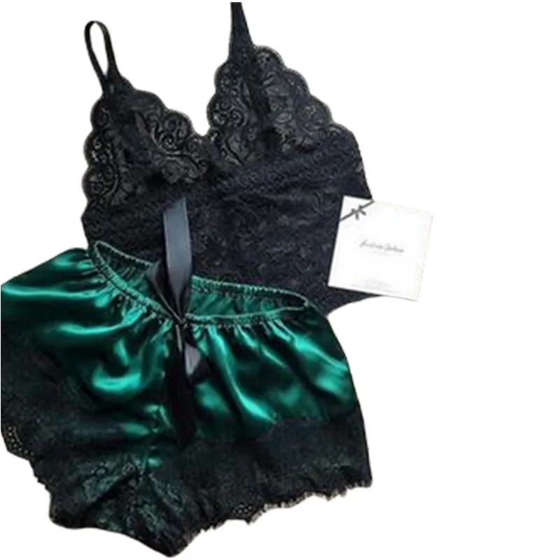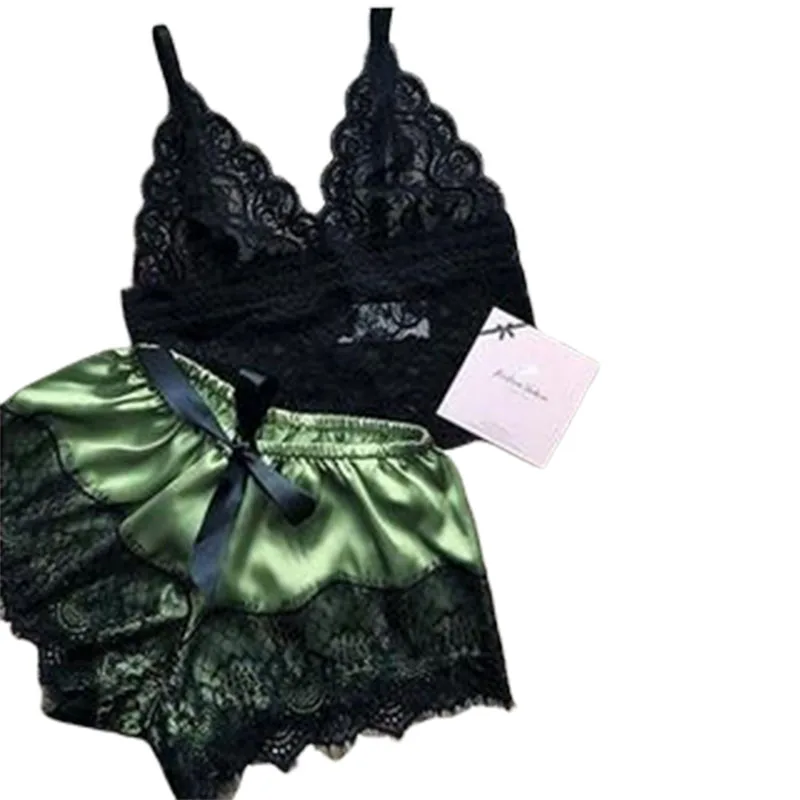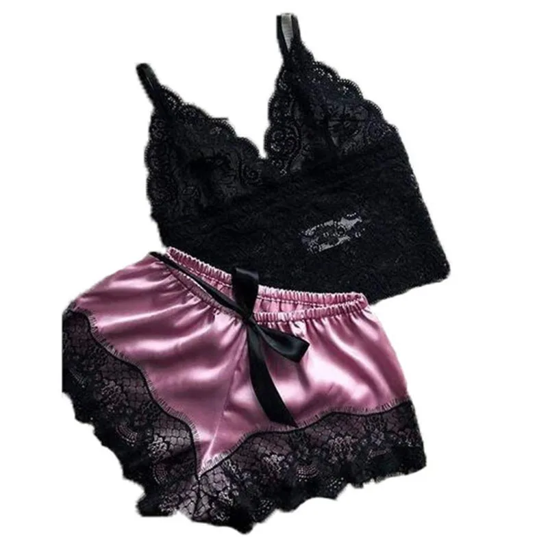 2 шт., женское нижнее белье, сексуальное шелковое атласное нижнее белье, пижамы, укороченный топ, бюстгальтер + шорты, комплект, Сексуальное Женское ночное белье без рукавов с V-образным вырезом