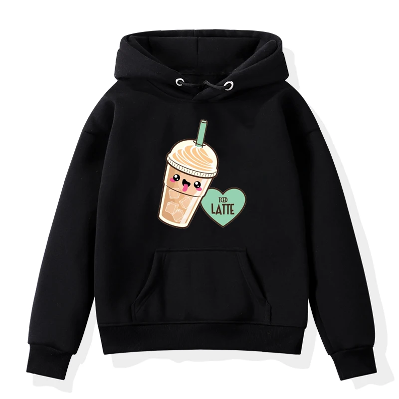 Толстовка с капюшоном для мальчиков и девочек, с принтом латте, с длинными рукавами, Детская осенняя Повседневная стильная одежда, верхняя одежда для малышей, От 2 до 14 лет