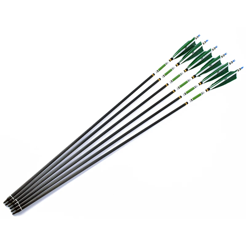 Стрелы для охоты, стрельба из лука 500, Микс углеродных стрел, целевая стрелы турецкие с перьями для лука длиной 20-50 фунтов, 361224 шт.