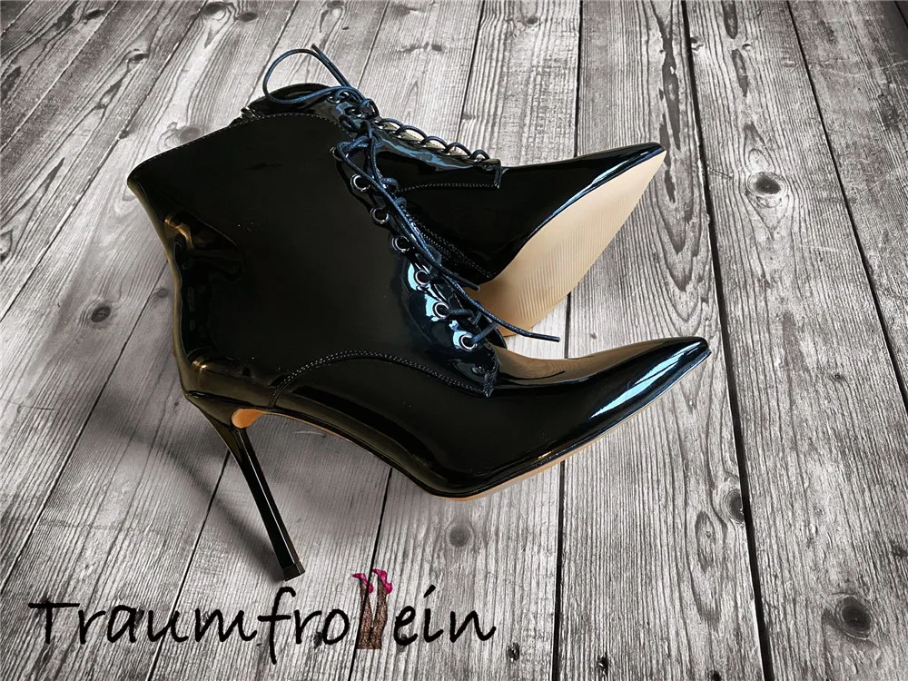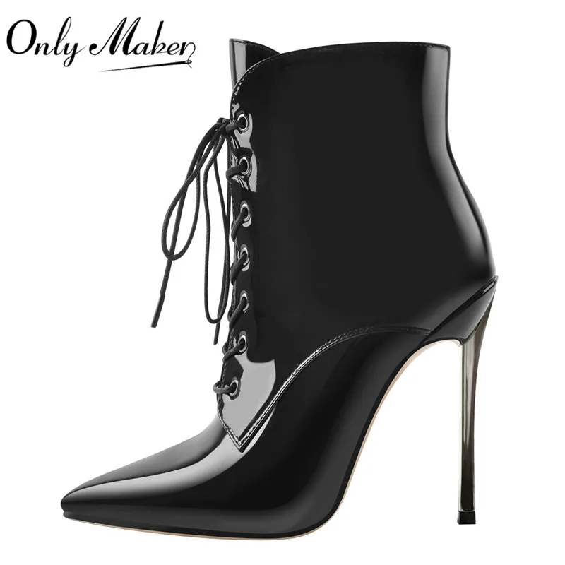 Onlymakerженские ботильоны с острым носком на тонком высоком каблуке со шнуровкой; Ботинки на шпильке с боковой молнией; Большие размеры
