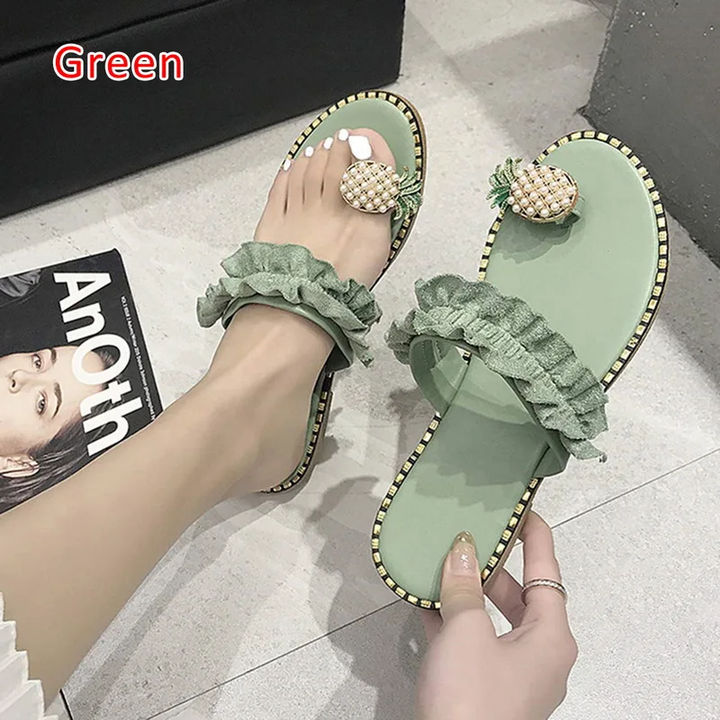 Женские шлепанцы с ананасовым жемчугом, богемные повседневные пляжные сандалии на плоской платформе, 2020