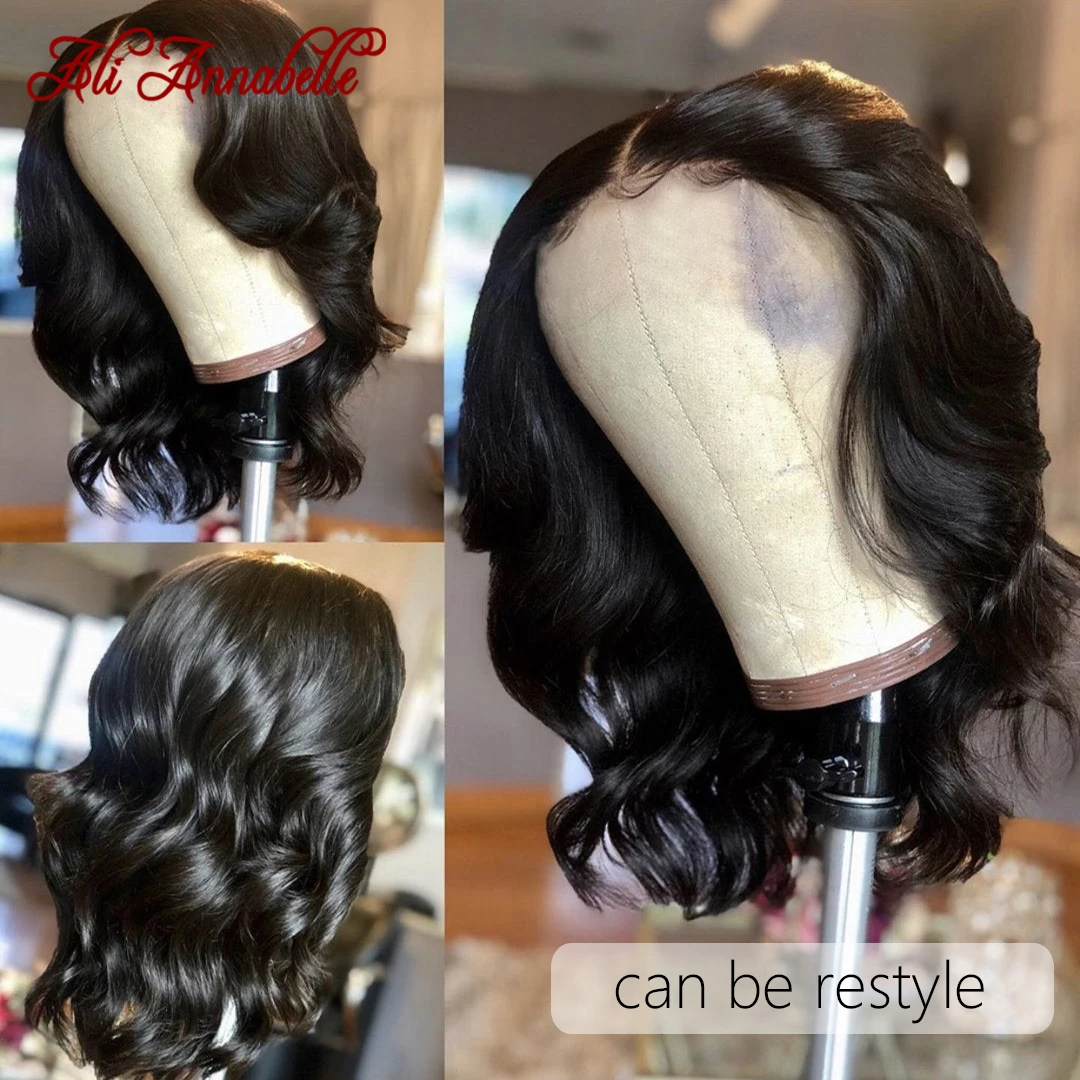 Бразильские короткие человеческие волосы боб на шнурке спереди, парики для женщин, предварительно выщипанные волосы с детскими волосами, объемная волна, кружевная часть, короткий парик Боб