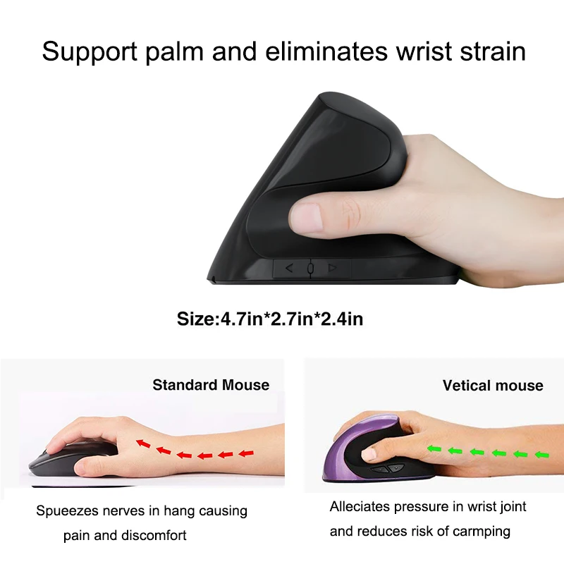Характеристики:Протестировано для соответствия стандартам FCC.Эргономичный дизайн для здорового и удобного использования.Высококачественная оптическая технология для точного контроля.Встроенная перезаряжаемая батарея никогда не потребует аккумуляторов и будет более удобной и практичной для вас.Режим Plug and play, без драйвера.Наименование товара: вертикальная мышьРасстояние передачи: 10 - 15 метровЕмкость аккумулятора: 400 мАч (в комплекте)Длина кабеля: около 4,76 футов/1450 ммРазмер: 101 мм x 71 мм x 80 мм/3,98 "x 2,80" x 3,15 "(прибл.)Посылка включает в себя:1 x Вертикальная мышь1 usb-приемник1 x зарядный кабельПримечания:Благодаря светильник и экрана Цвет Товара может быть s светильник ly отличается из-за характеристик монитора компьютера.