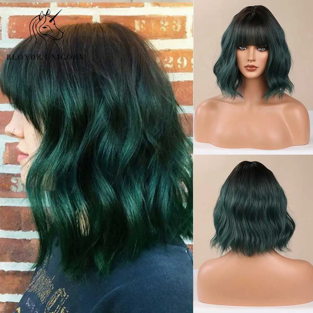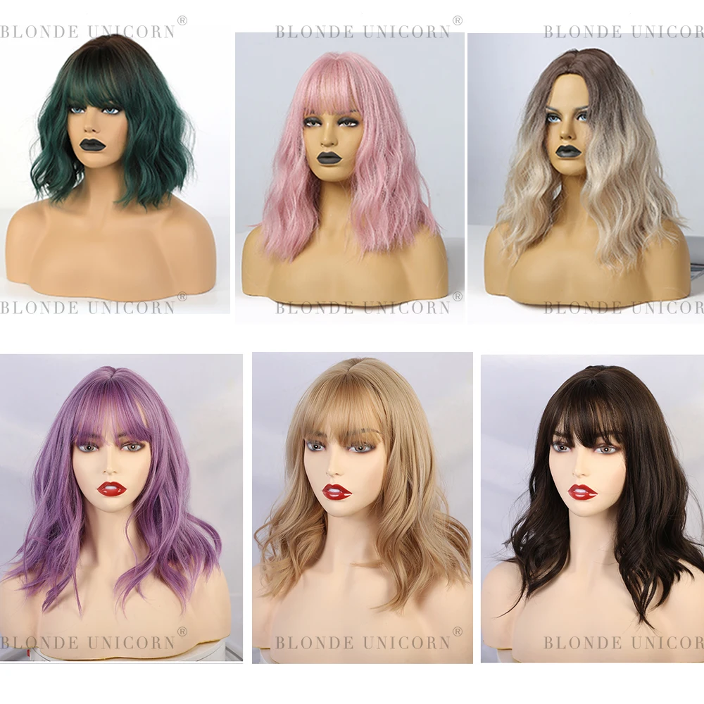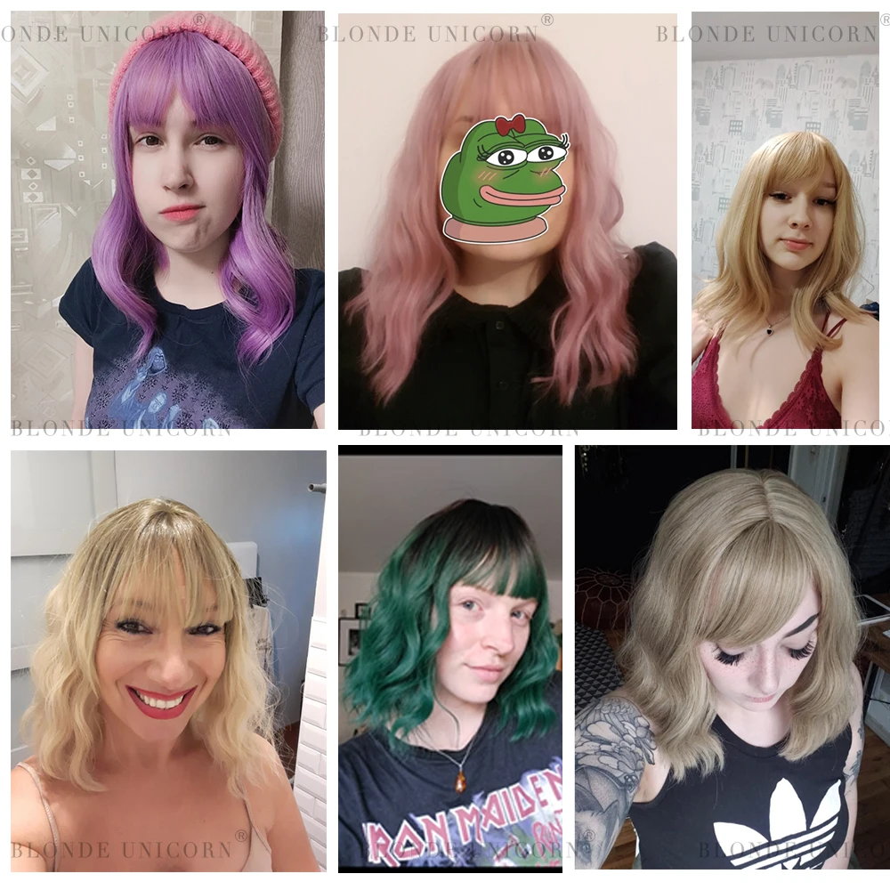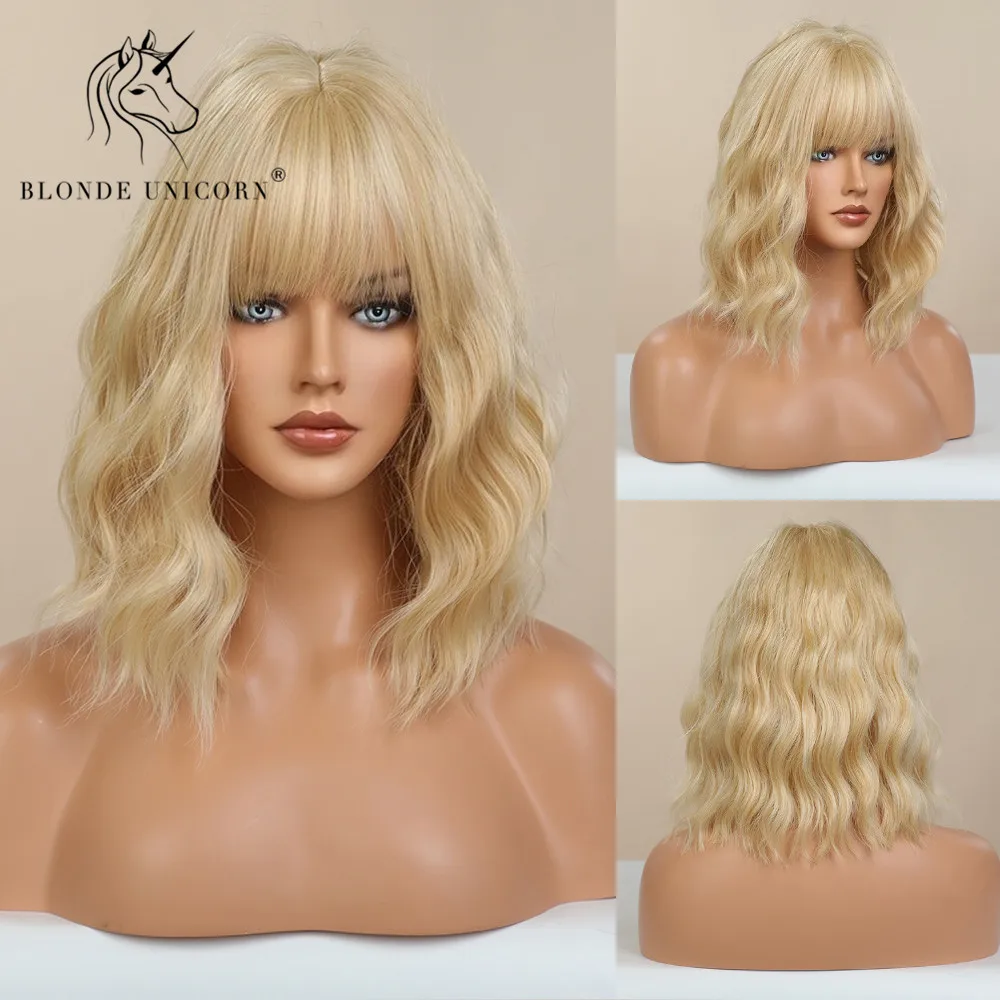 Парик из коротких волнистых женских синтетических волос Блонд Единорог деграде из термостойкого волокна