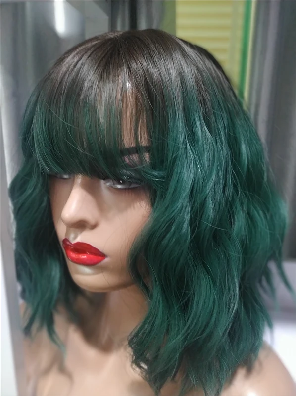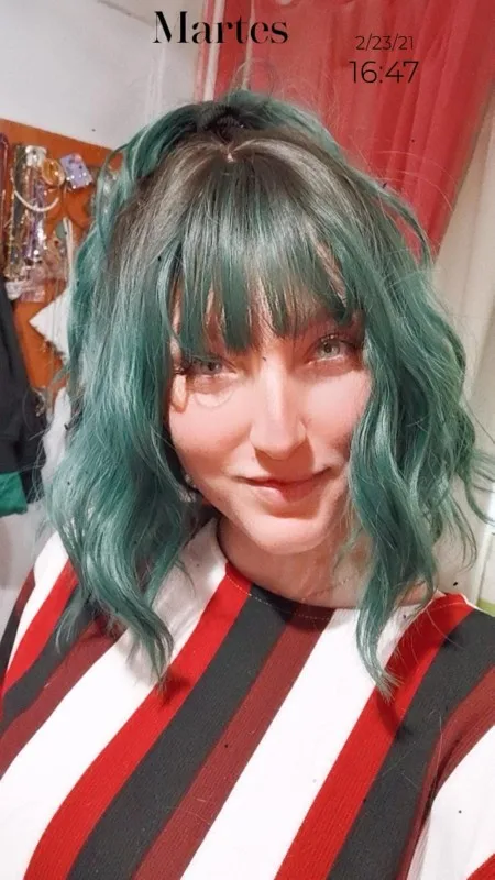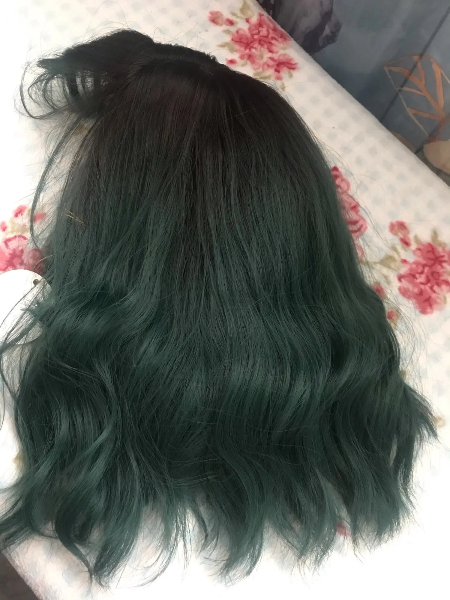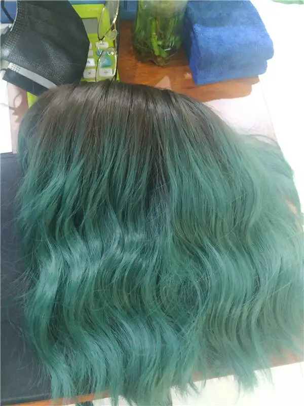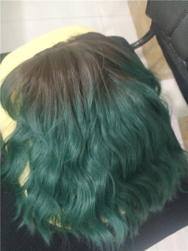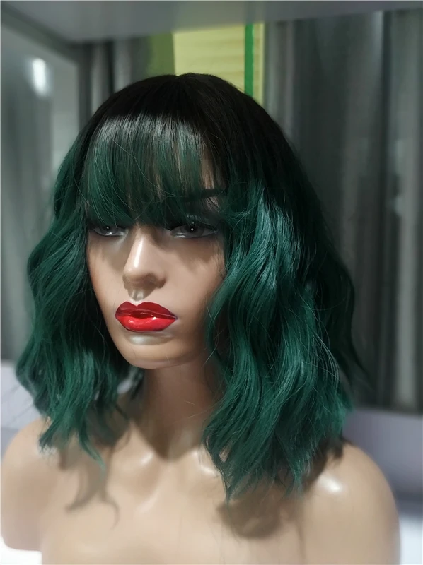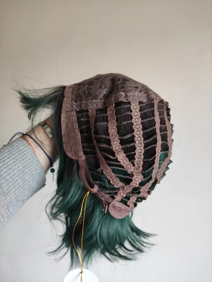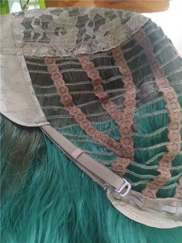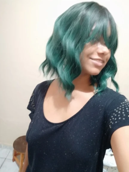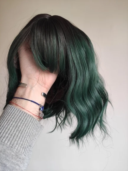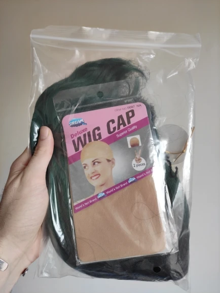 Заказ пришёл ровно за месяц. Волокно довольно жесткое. После мытья вода окрасилась в розовый(?). Челка жиденькая, и, в целом, прошивка челки оставляет желать лучшего - у меня она закончилась почти на середине лба(пришлось подрезать несколько длинных прядей там, где её не хватало). Так же челка полностью закрывала мои глаза. + по длине у лица была асимметрия. За такую цену я готова была к дополнительной стрижке и корректировке, так что претензий не имею. Укладка мне понравилась (разве что с челкой надо будет поработать)и после стирки сохранилась. Приятная волна. Цвет как на фото - больше отдает в синий, чем в зелёный. В подарок положили 2 капроновые шапочки. С продавцом не общалась.