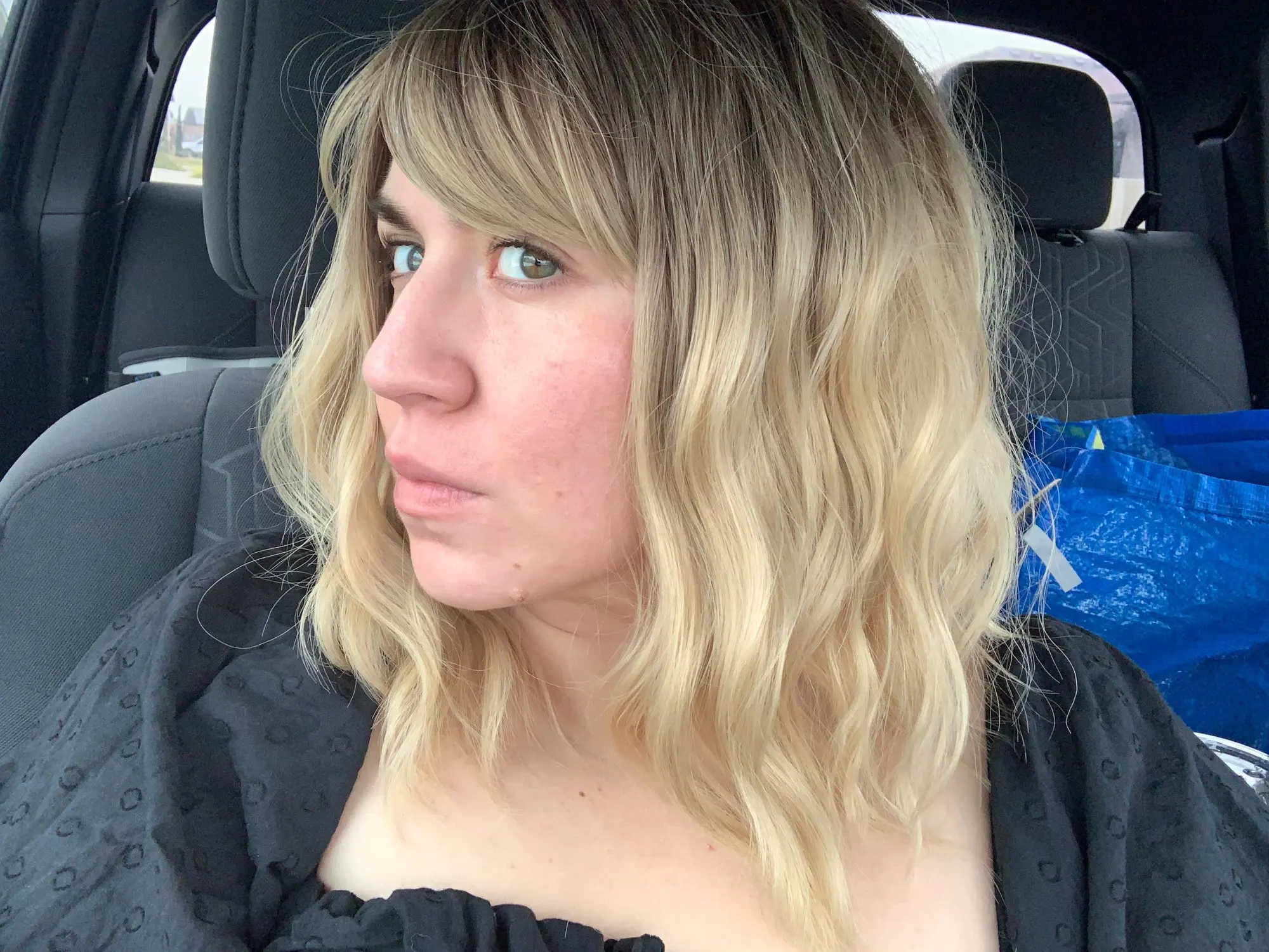 Это не черные корни сверху. Корни светло-светлые. Фотографии, такие как черные корни, но они просто грязный блонд. Но... Лучший парик когда-либо. Это парик, который я могу носить часами и часами, потому что он не тугой и у него нет зажимов. Любовь!