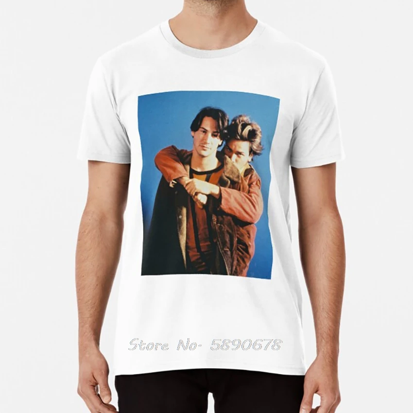 Мужская хлопковая футболка с принтом реки и Кеану, в стиле Харадзюку
