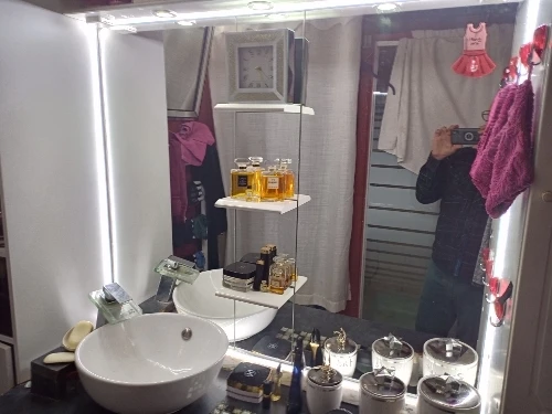 Долгая доставка, но хорошо получено. Продукт очень хорошего качества.... Поставляется с крепежным зажимом.... Я занимаюсь с башней зеркала ванной комнаты и внутренней стороны душа. .. Это зеркало на фото
