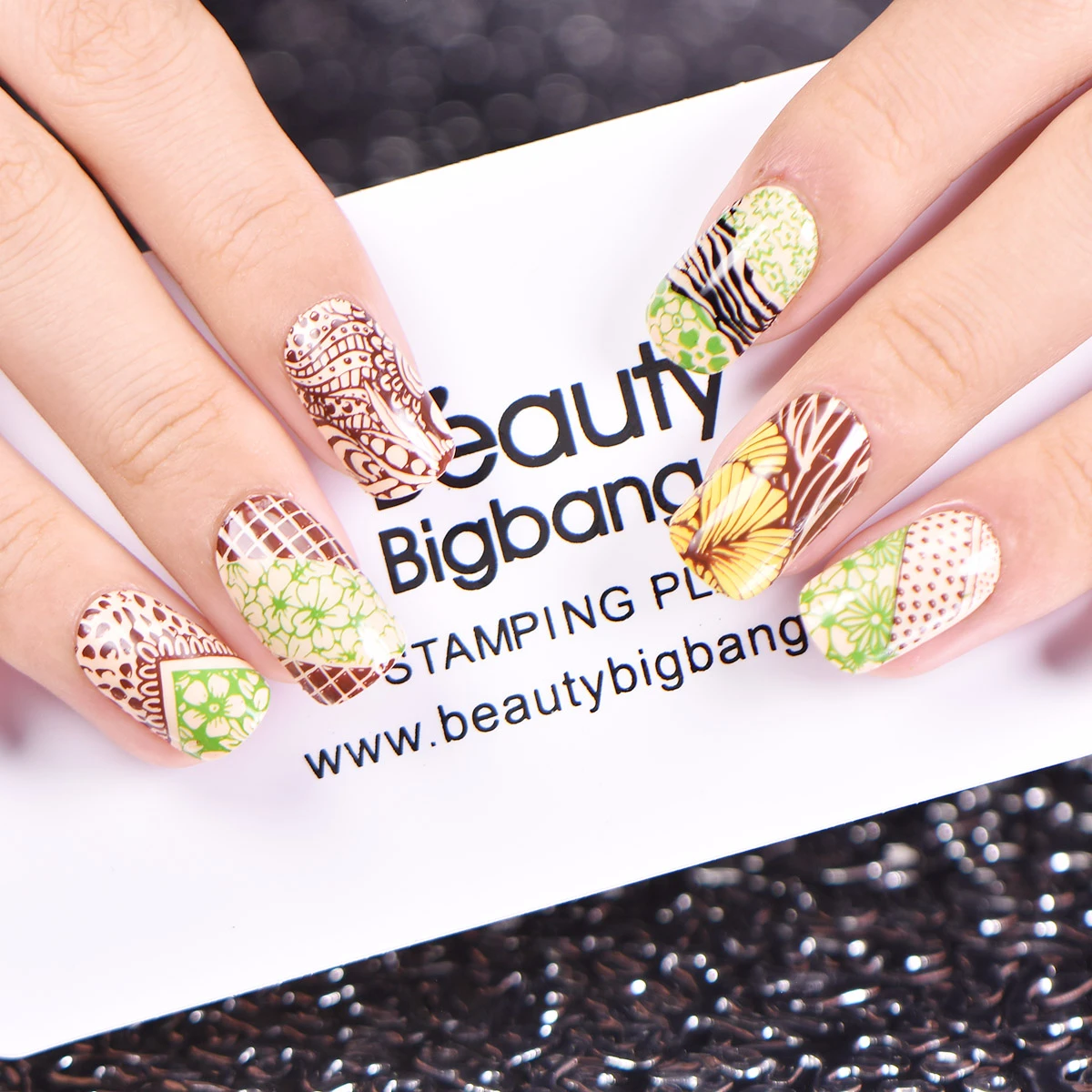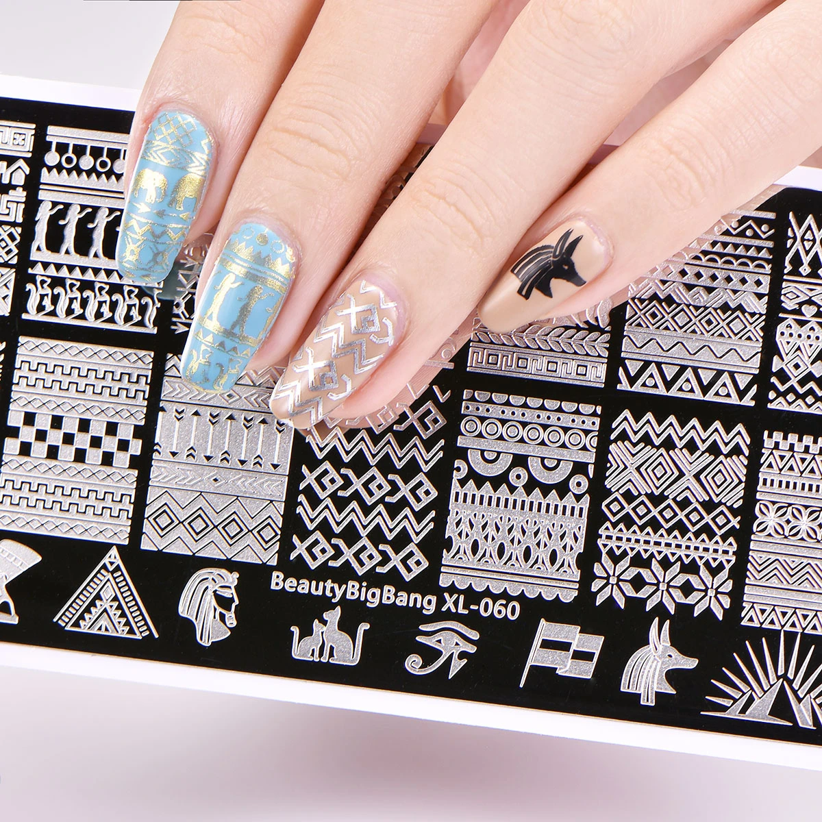 Набор штамповочных пластин Beautybigbang, 10-19 шт., цветочный рисунок, животные, геометрия, натуральный стиль, принт, изображение, дизайн ногтей, шаблон, XL-051-XL-060