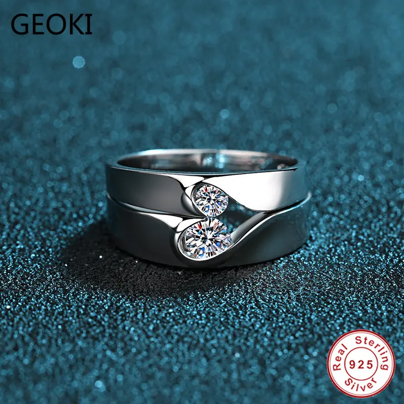 Кольца с бриллиантом Geoki VVS1 обручальные, превосходная огранка, Муассанит, 0,1-0,3 карат, обручальные, для мужчин и женщин, ювелирное изделие