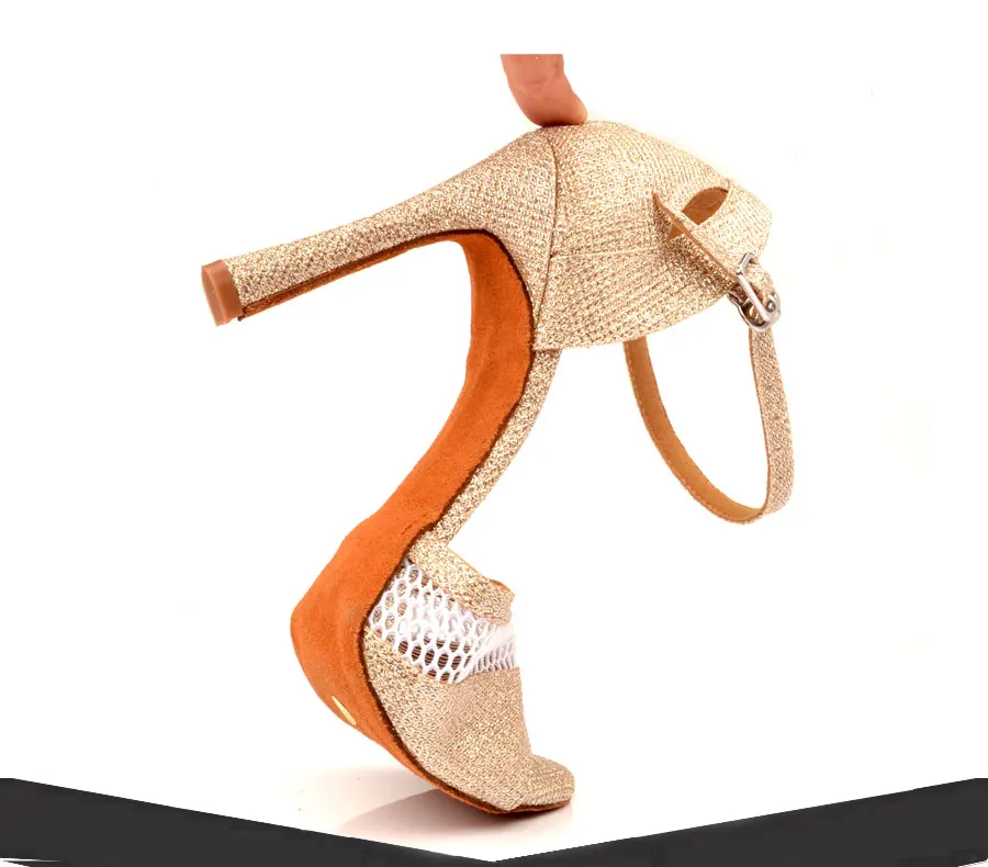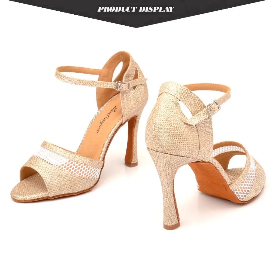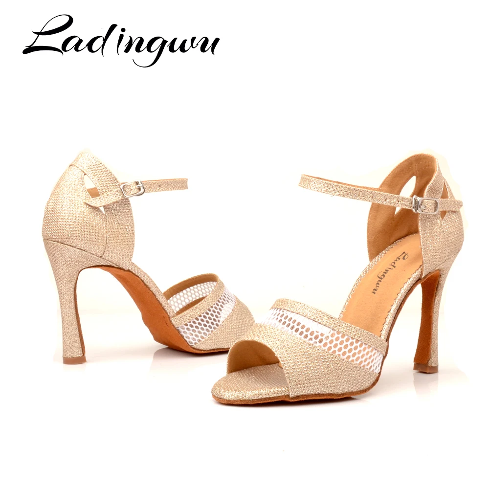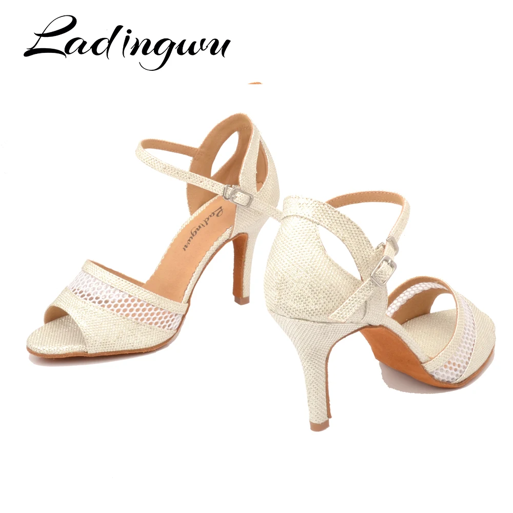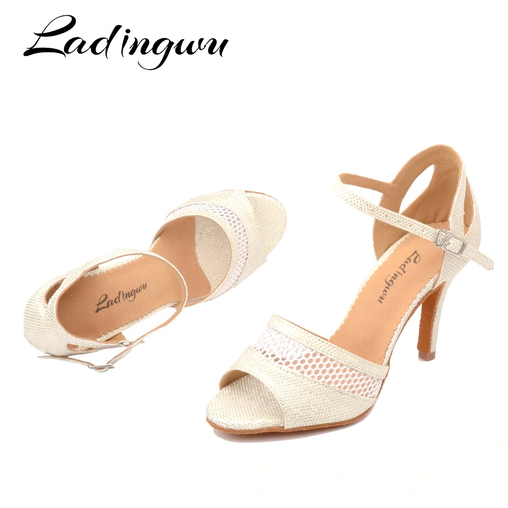 LadingwuНовая летняя дышащая танцевальная обувь из сетчатого материала с блестками; Женская обувь для латинских танцев цвета шампанскогобелого цвета; Женская обувь для бальных танцев