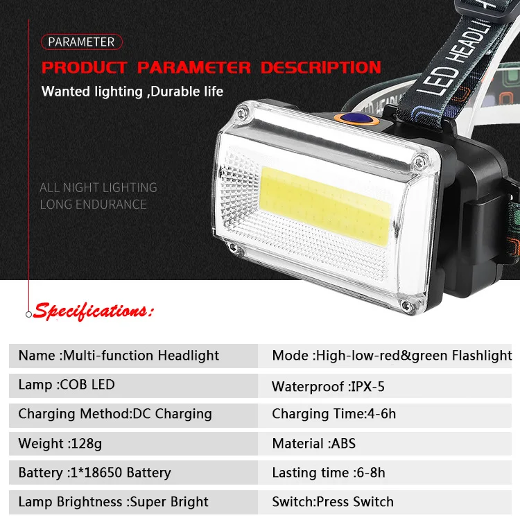 Налобный фонарь, 10 000 лм, светодиодный, перезаряжаемый, 3 режима, водонепроницаемый, с аккумулятором 18650, для охоты, рыбалки