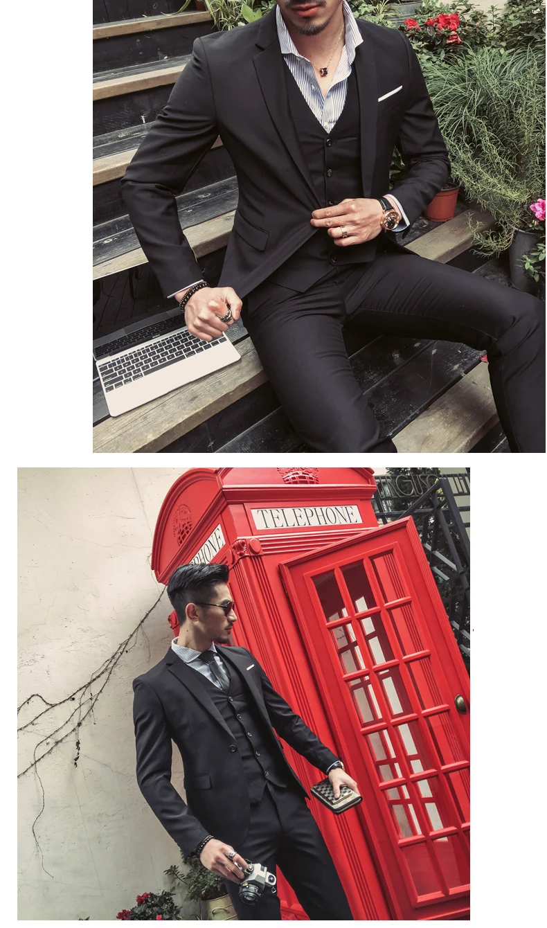 Мужские костюмы, повседневная одежда для жениха, смокинги, корейские деловые мужские платья для жениха, лучшие свадебные платья, приталенные мужские костюмы-тройки на одной пуговице