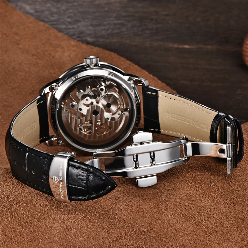Часы наручные PAGANI Мужские автоматические, роскошные деловые механические водонепроницаемые с кожаным ремешком, с отверстием скелета