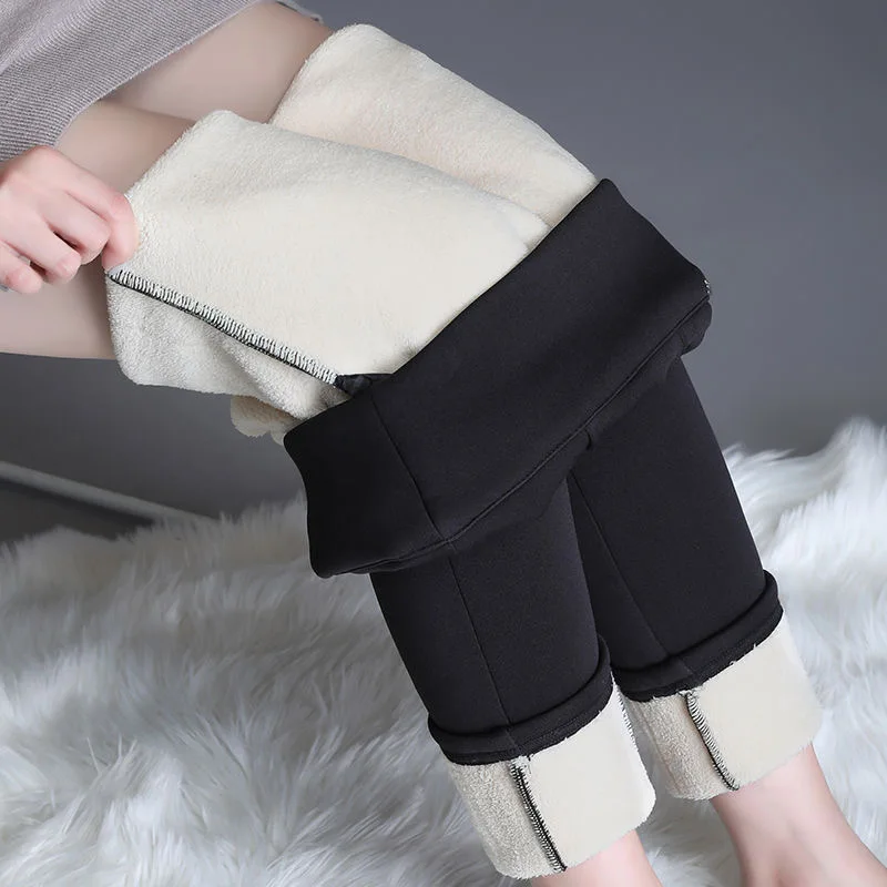 Женские зимние теплые леггинсы с высокой талией из овечьей шерсти