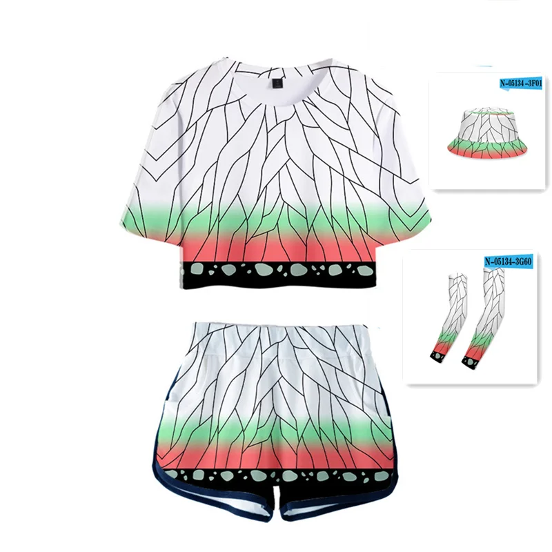 Костюм для косплея клинок демонов Kimetsu no Yaiba, короткая юбка и шорты для девочек, Солнцезащитная шляпа, шорты для бега с защитой от солнца, комплект для девочек
