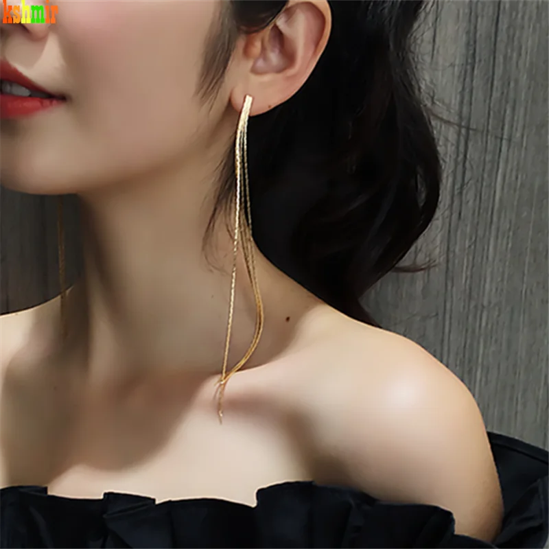 Kshmir20 см чрезвычайно JianChao длинные серьги с кисточками женские темпераментные серьги-гвоздики корейские женские золотые серьги
