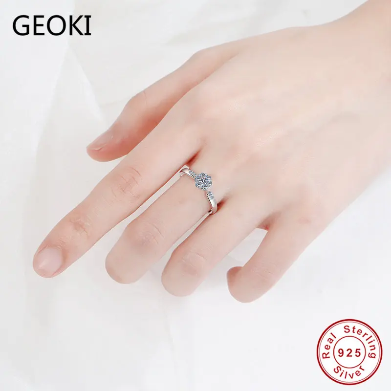 Женские кольца с муассанитом Geoki VVS1, из стерлингового серебра 9...