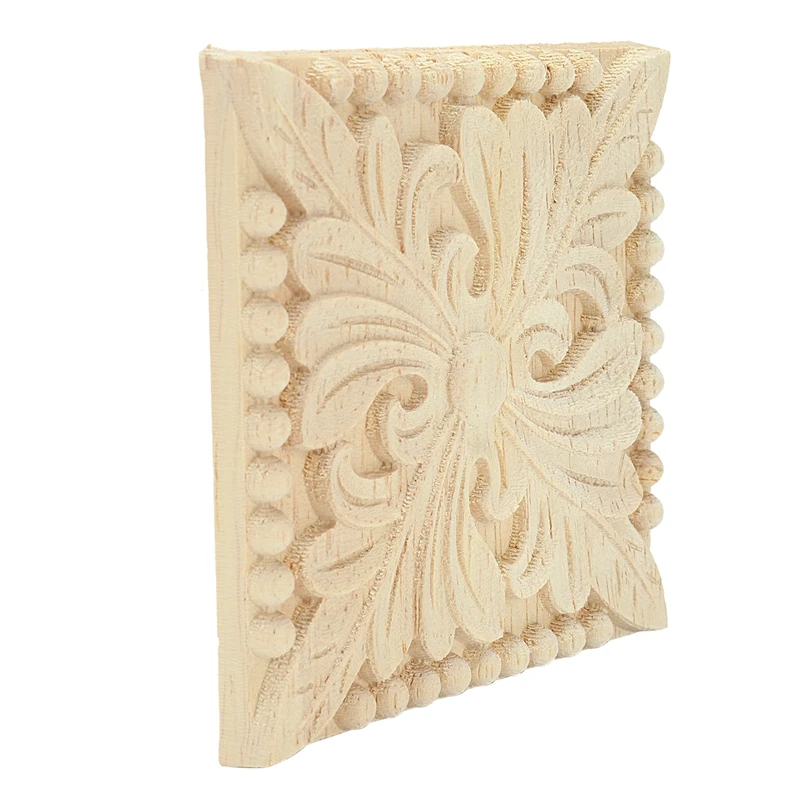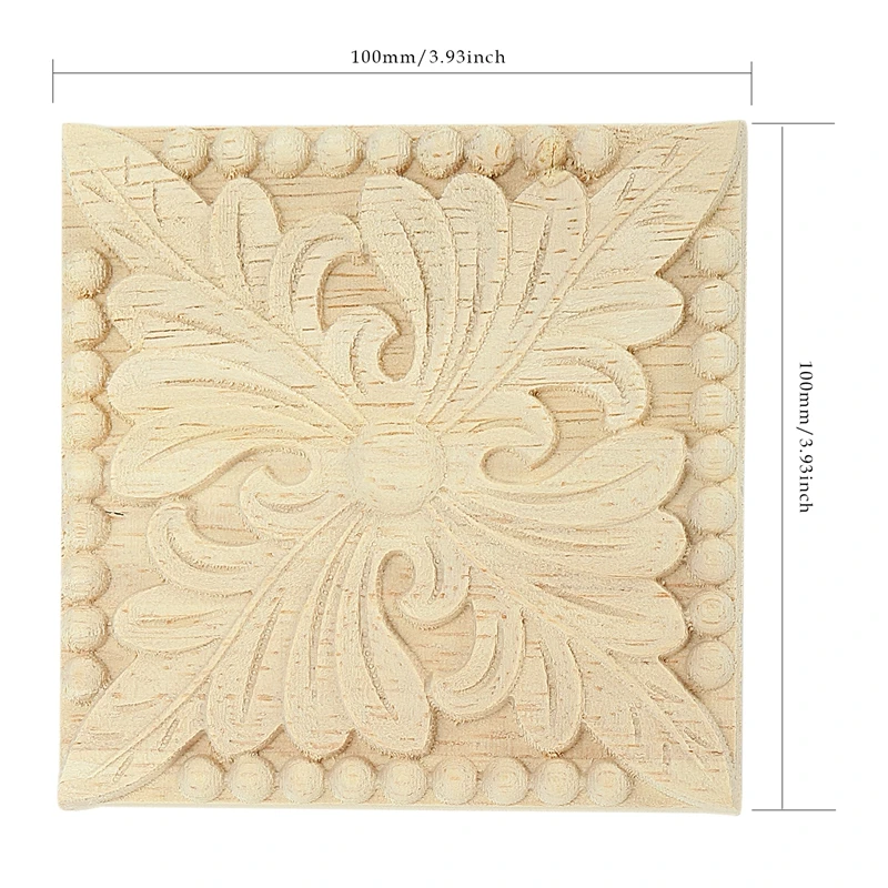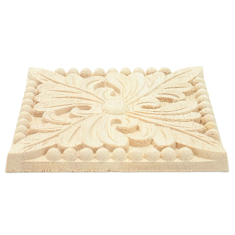 Аппликации из натурального дерева, квадратные, с цветочной резьбой, декоративные деревянные молдинги для дверей шкафа, мебели, декор для рукоделия, 10x10