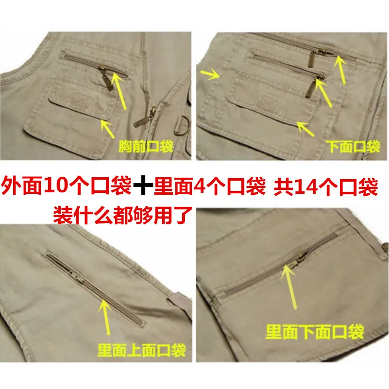 Жилетка мужская повседневная хлопковая, жилет без рукавов со множеством карманов для фотографии, размера плюс 5XL 6XL 7XL, 14 карманов, на лето