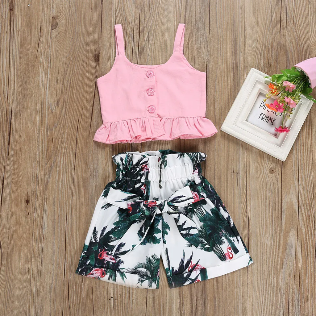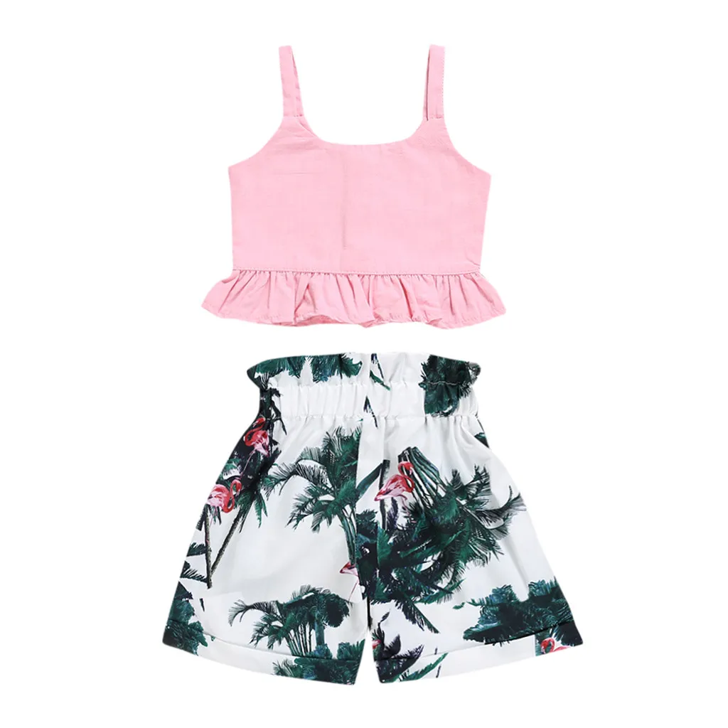 Детская одежда TELOTUNY, одежда для маленьких девочек, детская одежда, топ без рукавов с оборками, повседневные шорты и штаны с цветочным принтом, 2 июня