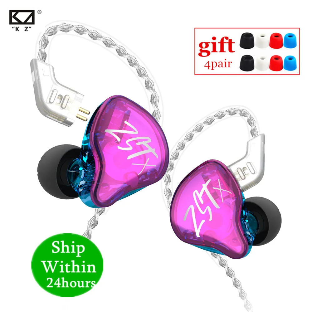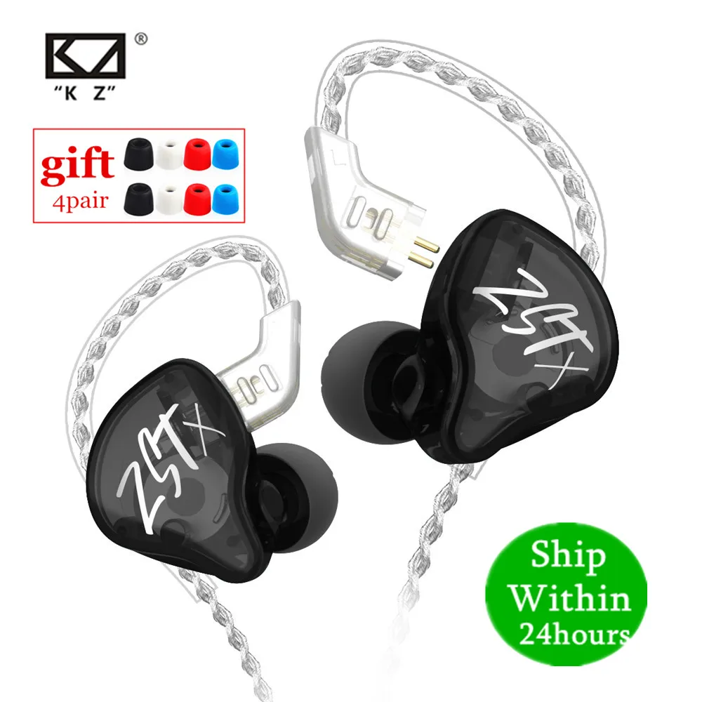 Наушники-вкладыши KZ ZST X 1BA 1DD, гибридные, Hi-Fi, спортивные, с шумоподавлением
