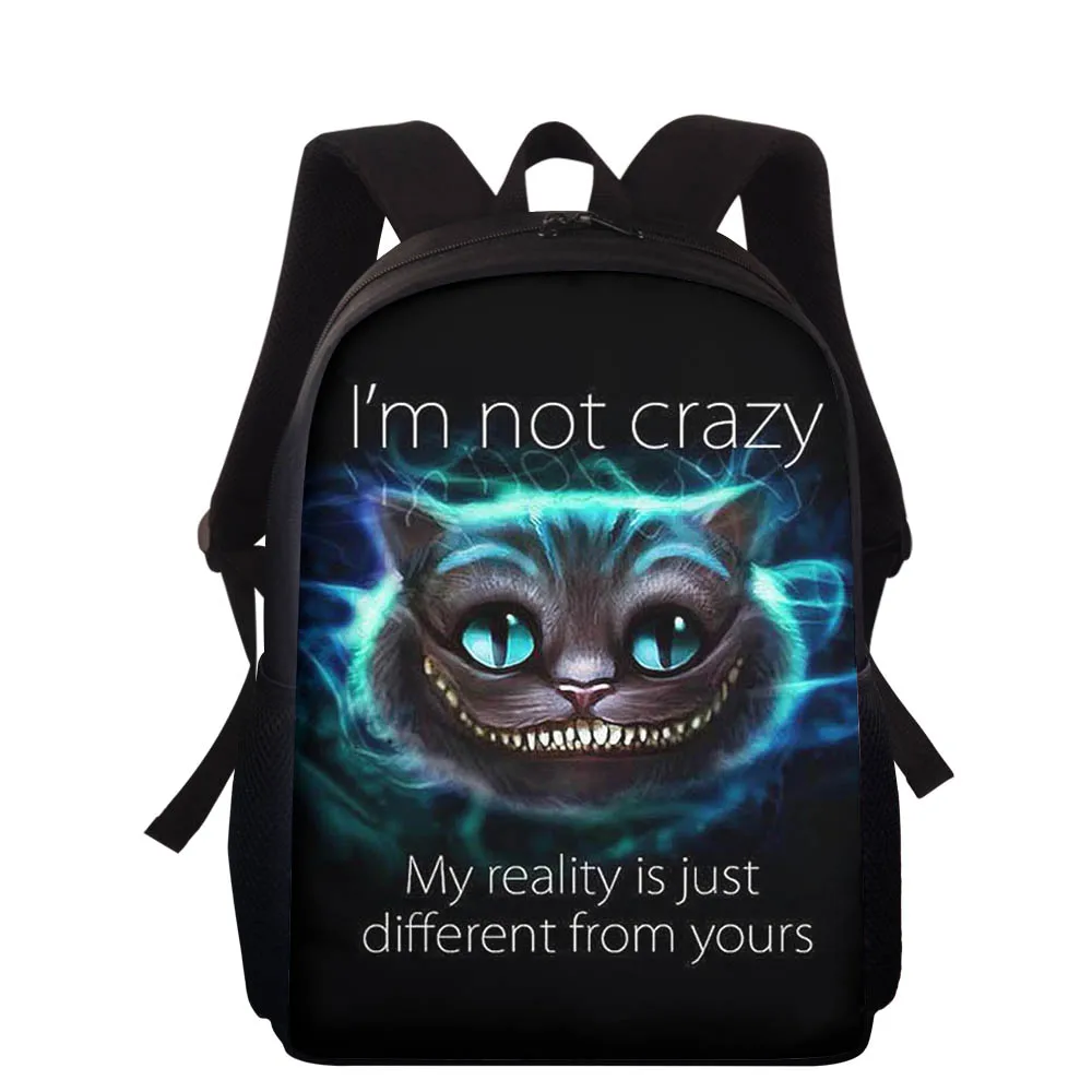 Детский Школьный рюкзак 15 дюймов, забавный ранец с 3D-принтом Чеширского кота и улыбки для мальчиков и девочек-подростков, школьные портфели для учебников
