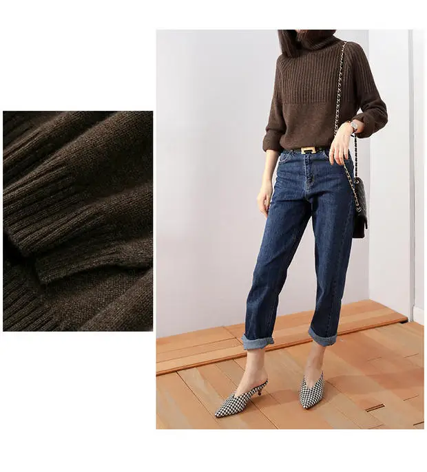 Зимний свитер женский Водолазка Модный женский свитер вязаный пулов...