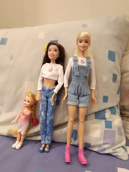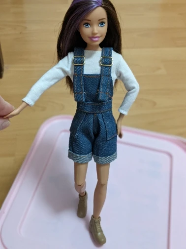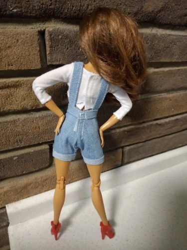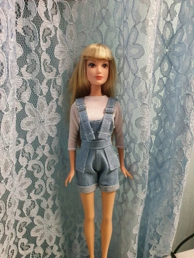Очень хороший комбинезон. Идеально сел на Барби. Однако ожидала, что маечка будет подлиннее, но и так ничего. нужно лишь учитывать, что возможно будет торчать по бокам. Также этот комплект хорошо сел и на Скиппер, лишь чуть великовата футболка.