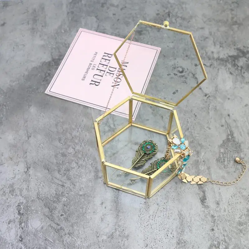 Скандинавский шкатулка для безделушек, шестигранный прозрачный стеклянный чехол для кольца, коробка для обручального кольца, стеклянный чехол с вечным цветком, инновационное украшение для дома