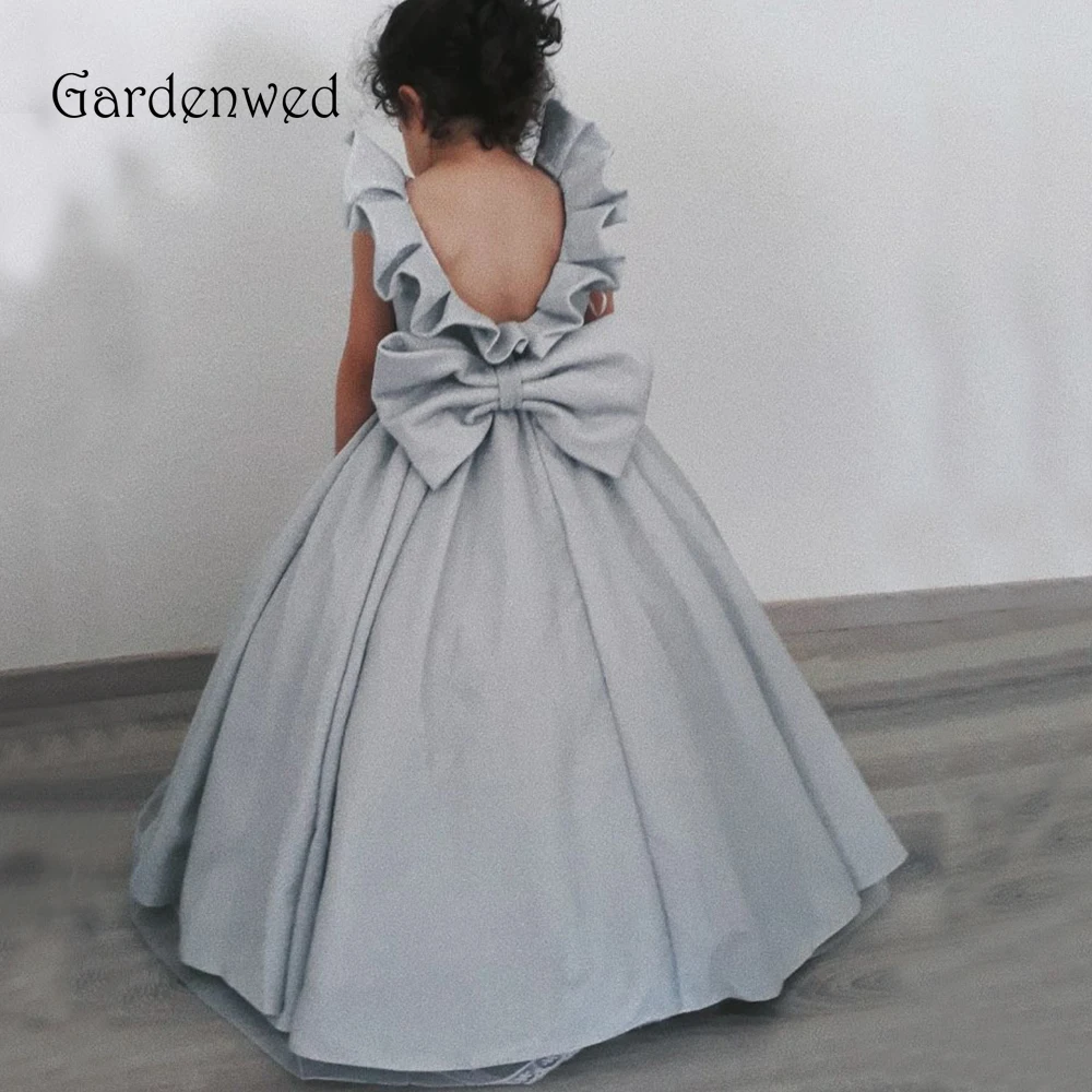Милое розовое атласное платье с бантом для девочек, свадебные плать...