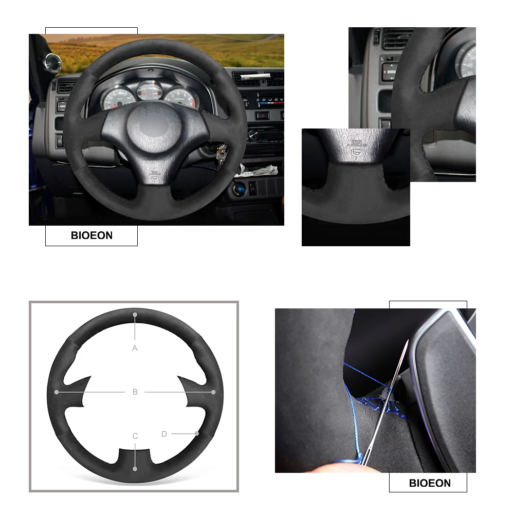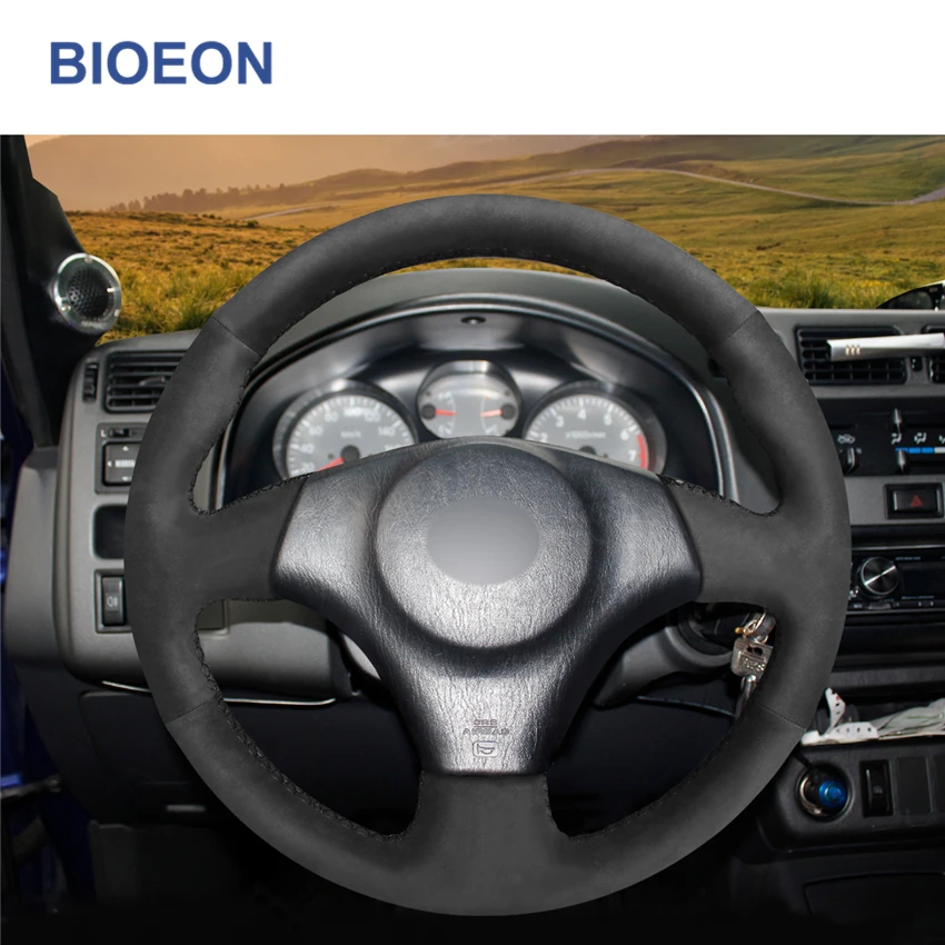 Сшитая вручную черная замшевая оплетка на руль для Subaru Impreza W...