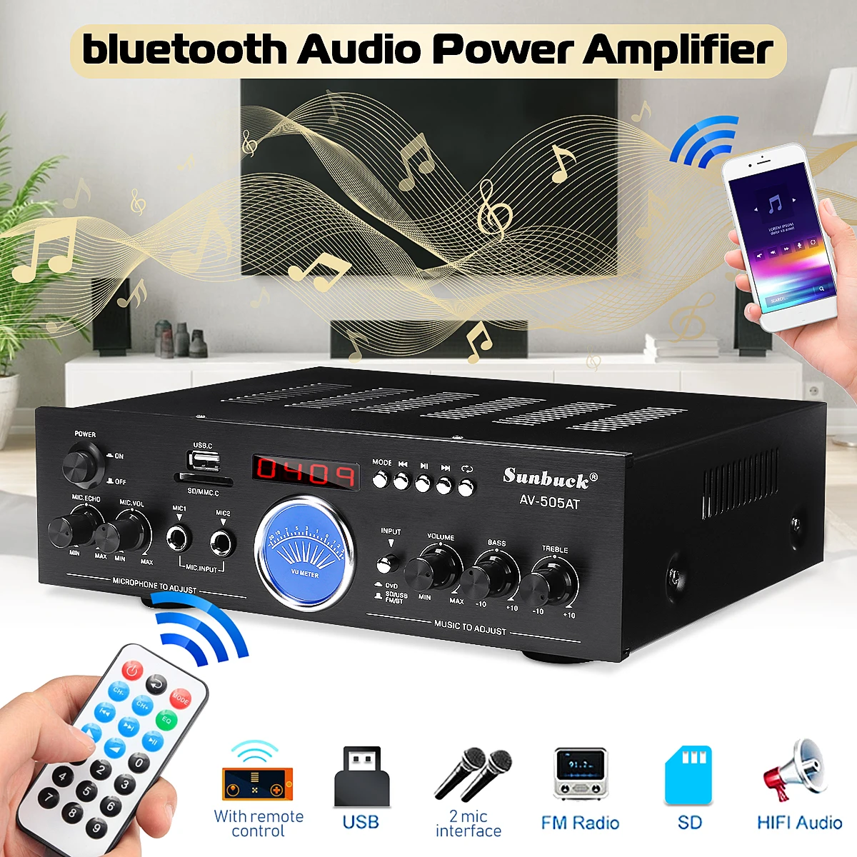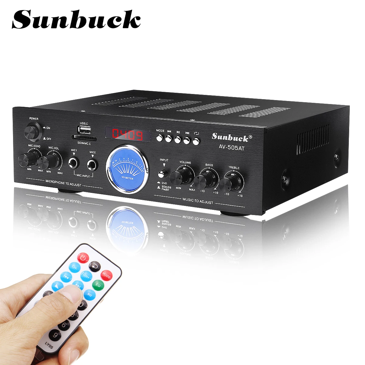 Bluetooth аудио усилитель мощности 220 В USB SD 2 * Mic вход