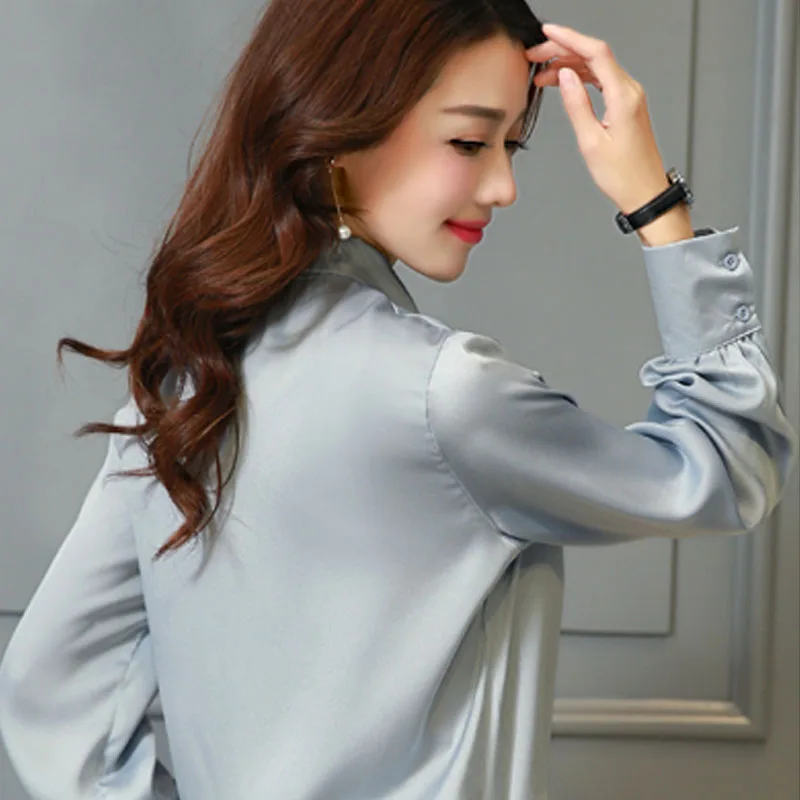 Женские топы и блузки 2021 новая весенняя размера плюс, Повседневная шифоновая блуза, v-образный вырез, Однотонная рубашка с рукавом-фонариком и с бантом модные Blusas Mujer