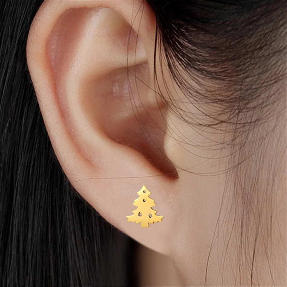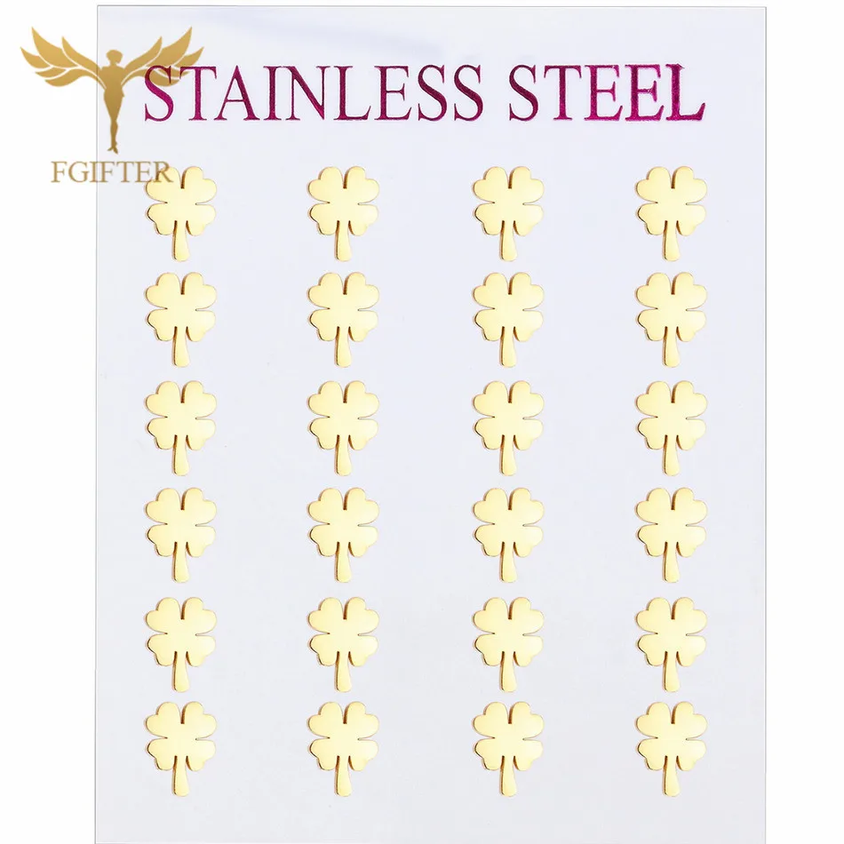 Серьги из нержавеющей стали для женщин и девушек, ювелирные украшения с золотыми ушками в форме животных, клевера, цветка, кота, птицы, единорога, медведя, бабочки