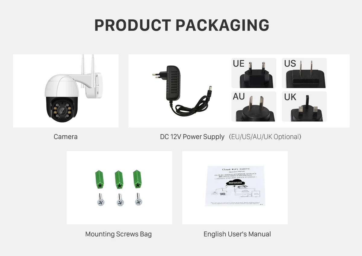 1 * PTZ камера1 * источник питания1 * руководство на английском языке1 * винтовая сумка