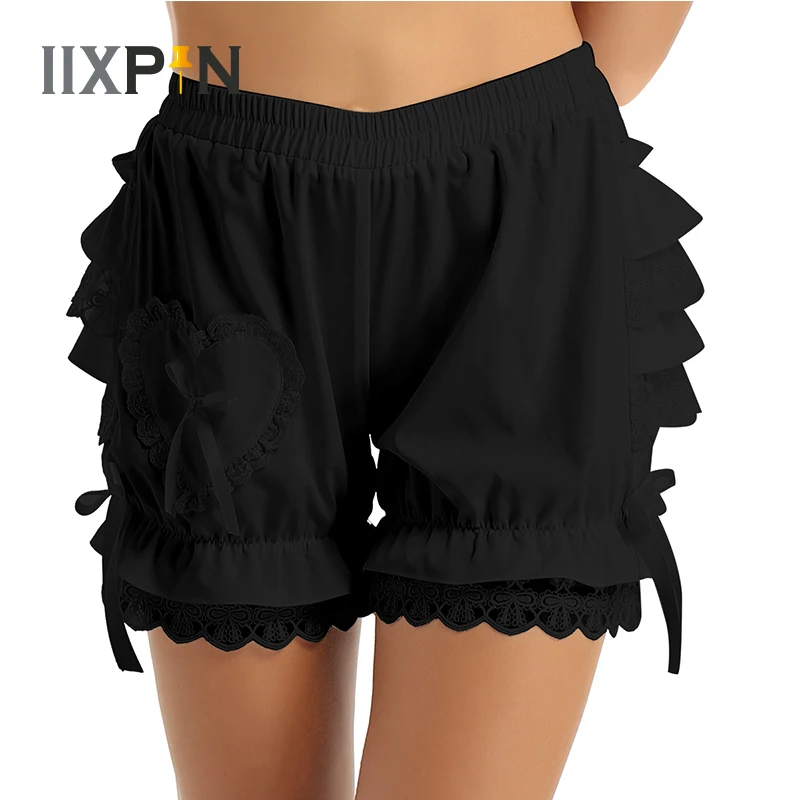 Женские винтажные шорты Blommers, готические шорты с эластичной талией, многослойные шорты с оборками и кружевной отделкой, свободные шорты