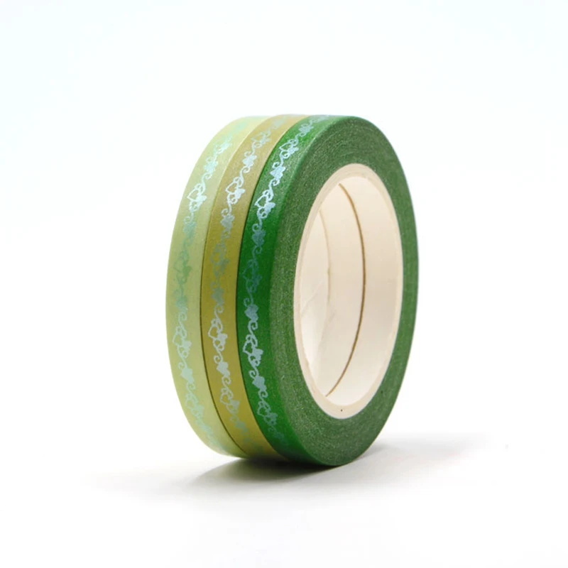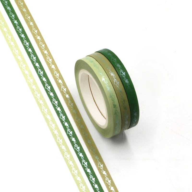 Новые милые 5 мм тонкие сердечки зеленые фольги васи ленты Набор сделай сам Скрапбукинг планировщик клейкие Маскирующие Ленты Kawaii Канцтовары оптом