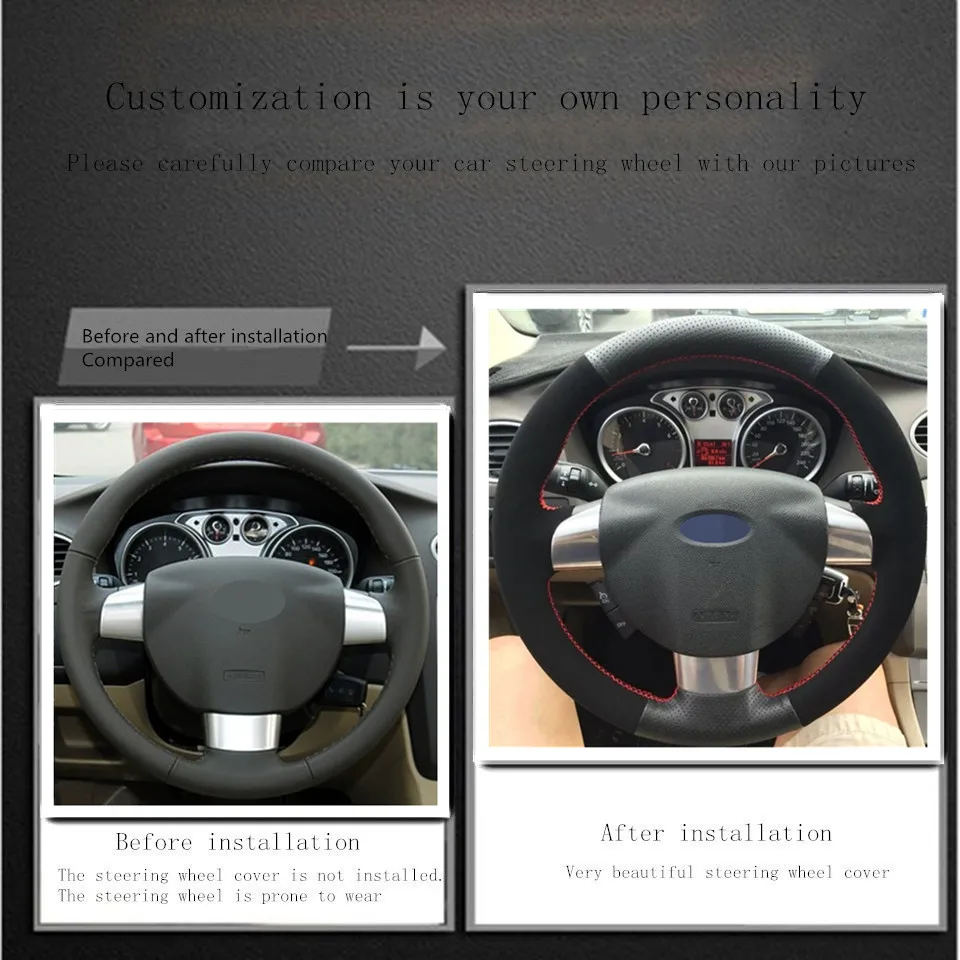 Пожалуйста, проверьте и сравните свой Автомобильный руль с рулем на картинке перед покупкой. (наши чехлы на руль-это индивидуальный продукт, если есть какие-либо различия, они не подойдут)! Этот продукт является рулевой крышкой, а не рулем! Этот продукт подходит для Ford Focus 2 2005 - 2011 (3 Спицы)