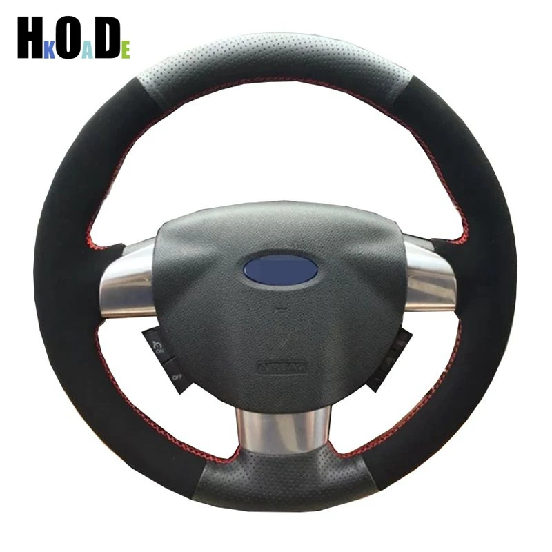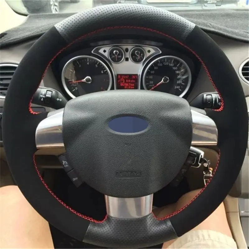 Чехол рулевого колеса автомобиля для Ford Focus 2 2005 - 2011 (3 Спицы), сделай сам, черный, Ручное шитье, замша, чехол на руль