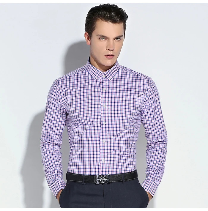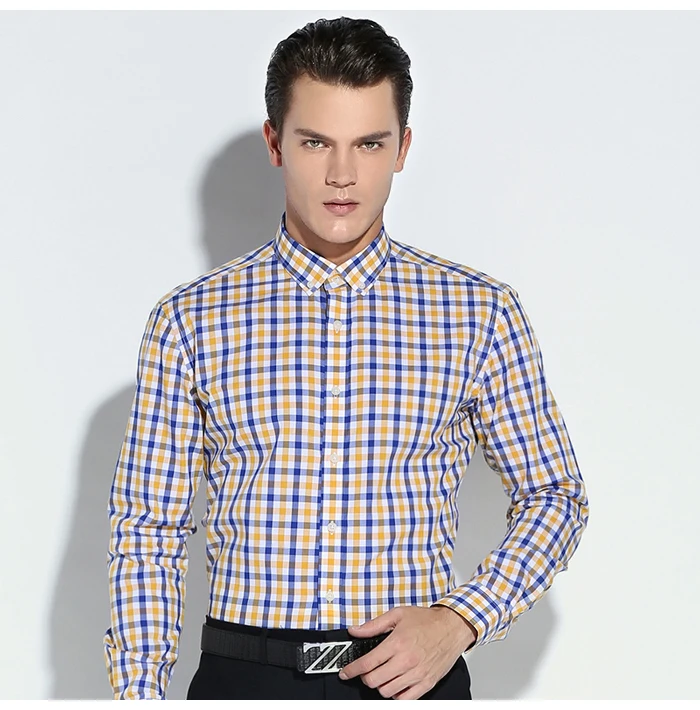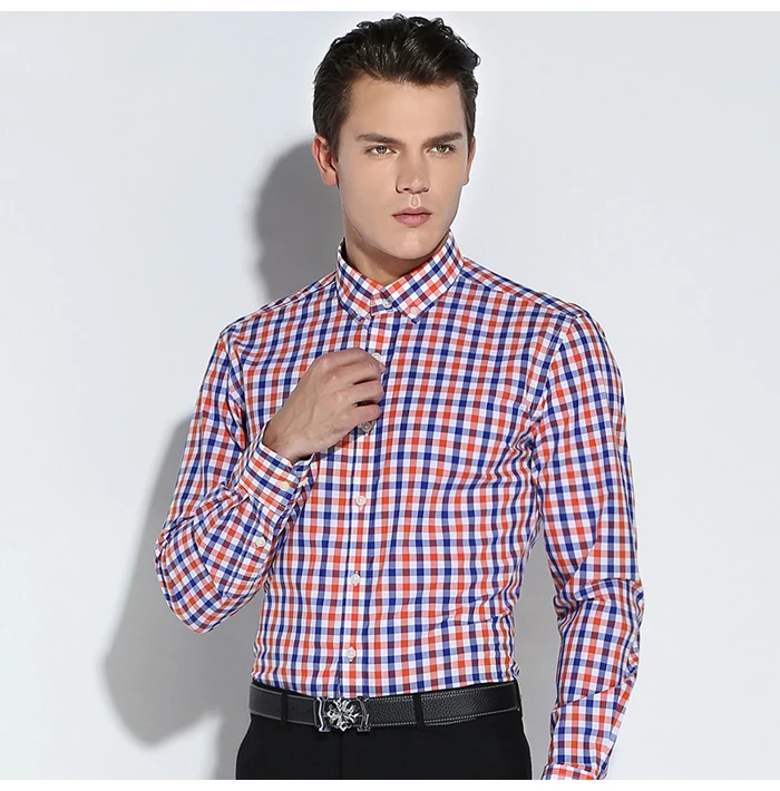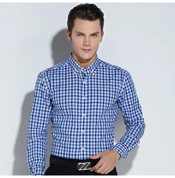 Клетчатая Хлопковая мужская рубашка в английском стиле, Без карманного дизайна, с длинным рукавом, повседневная, стандартная, на пуговицах, рубашка в клетку