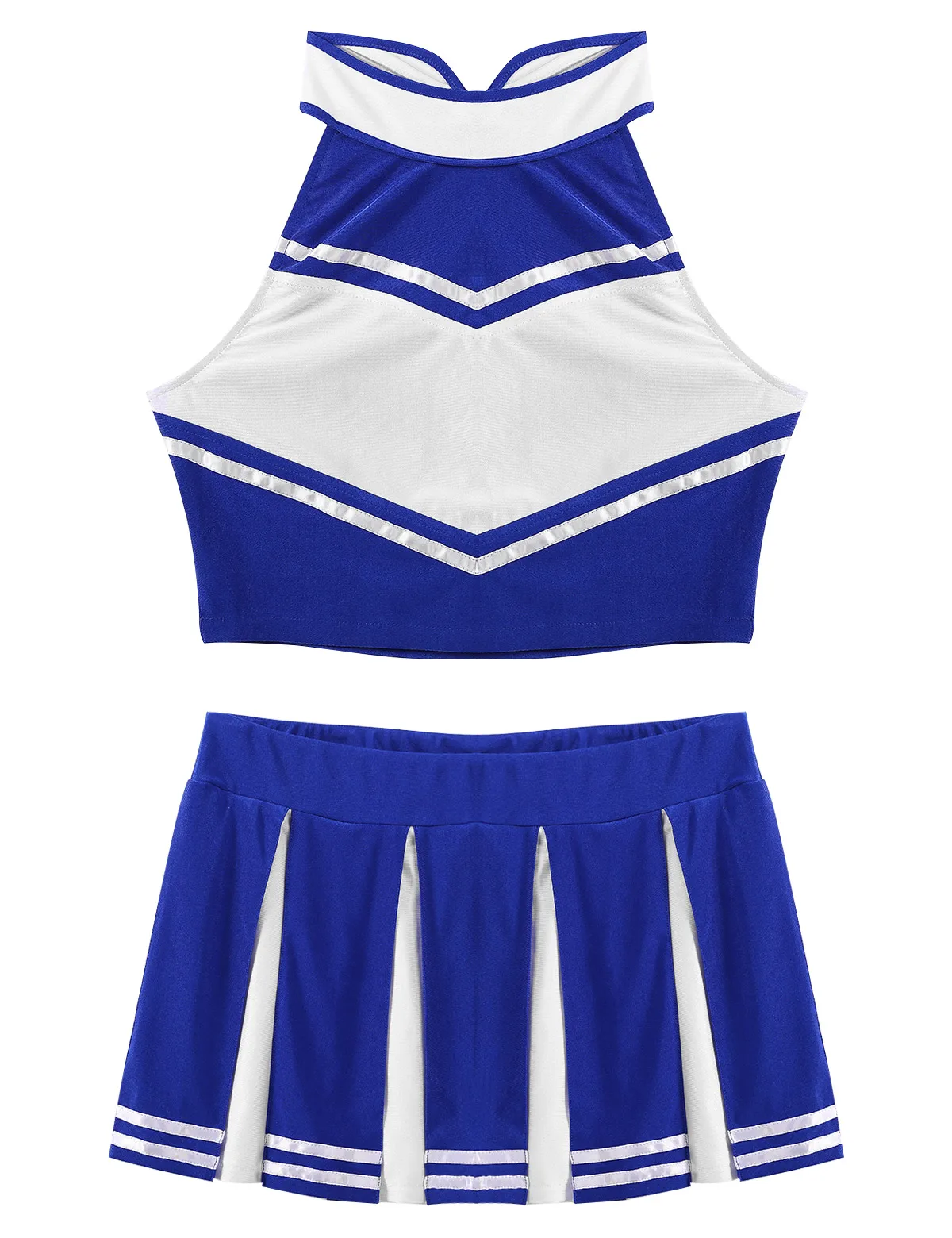 Особенности:Женский костюм болельщика для взрослых; Одежда для костюмированной вечеринки; Цвет блока; Шикарный и стильный.Воротник-стойка и укороченный топ без рукавов, скрытая застежка-молния сзади. Сочетающаяся с широким эластичным поясом мини плиссированная юбка с белыми полосками на подоле.Хорошая эластичная ткань, мягкая и удобная в носке, отлично подчеркивает ваши вечерние и спортивные мероприятия.Хороший выбор для нарядов, ролевых игр, сценических костюмов, карнавала, танцев, соревнований по танцам и т. д.Для получения подробной информации о размерах обратитесь к описанию товара. Ручная стирка в холодной воде.