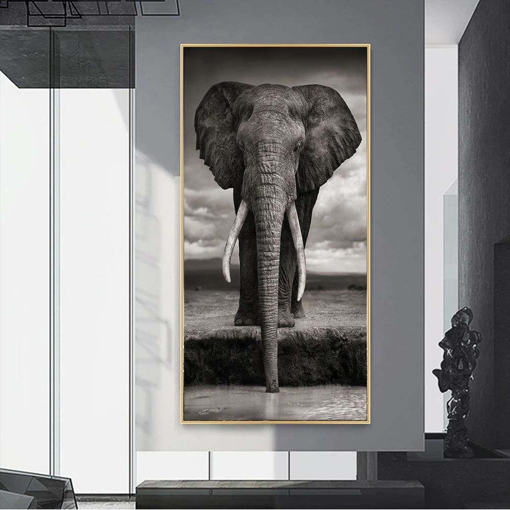 Алмазная 5d Вышивка сделай сам, полное сверление, черная и краска в виде африканского слона по номерам, вышивка крестиком, круглая Алмазная вышивка