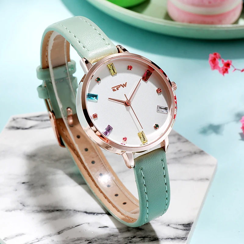 Женские наручные часы с большим циферблатом и кожаным ремешком