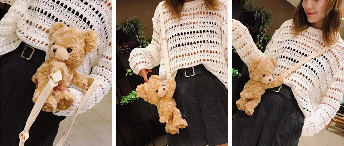 Сумка-мессенджер женская, с плюшевым медведем, размер S, L